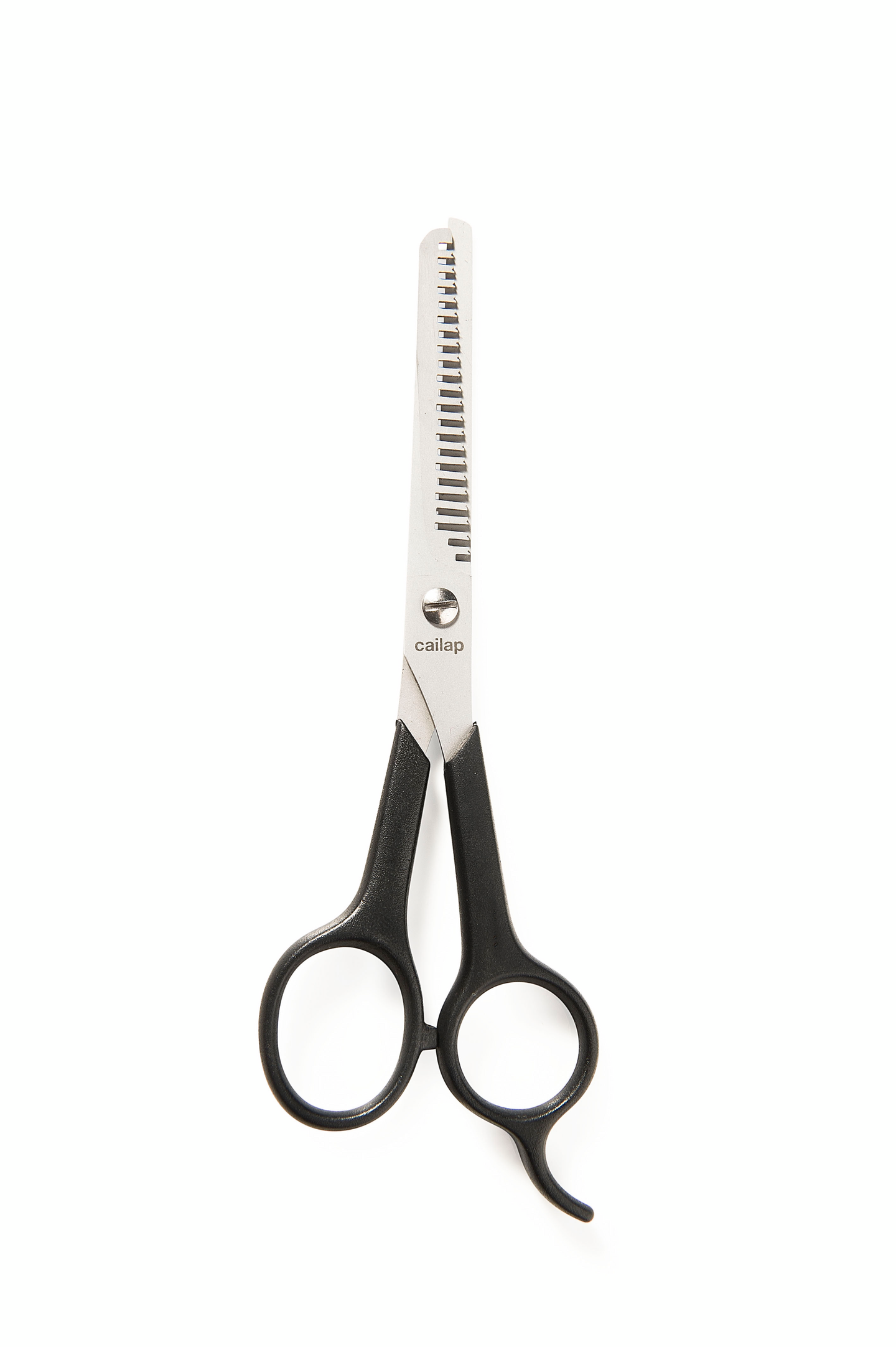Ruostumattomasta teräksestä valmistetut hiusten ohennussakset. Saksien toisessa terässä on lovet, jonka vuoksi hiusten ohentaminen ja kerroksittain leikkuu onnistuu helposti.