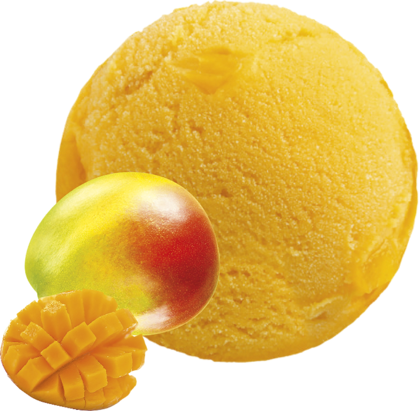 Vegaaninen mangosorbetti ja karamellisoituja mangon paloja