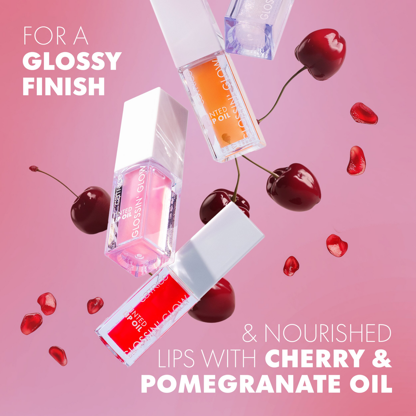 Huultenhoidon mullistaja: CATRICE Glossin' Glow Tinted -huuliöljyssä yhdistyvät huulikiillon kiiltävä viimeistely ja huulivoiteen tehokkaasti ravitsevat ominaisuudet. Koostumus reagoi huulien luonnolliseen pH-arvoon ja saa aikaan ainutlaatuisen, pehmeän vaaleanpunaisen viimeistelyn. Kirsikkaa ja granaattiomenaöljyä sisältävä koostumus ravitsee tehokkaasti.