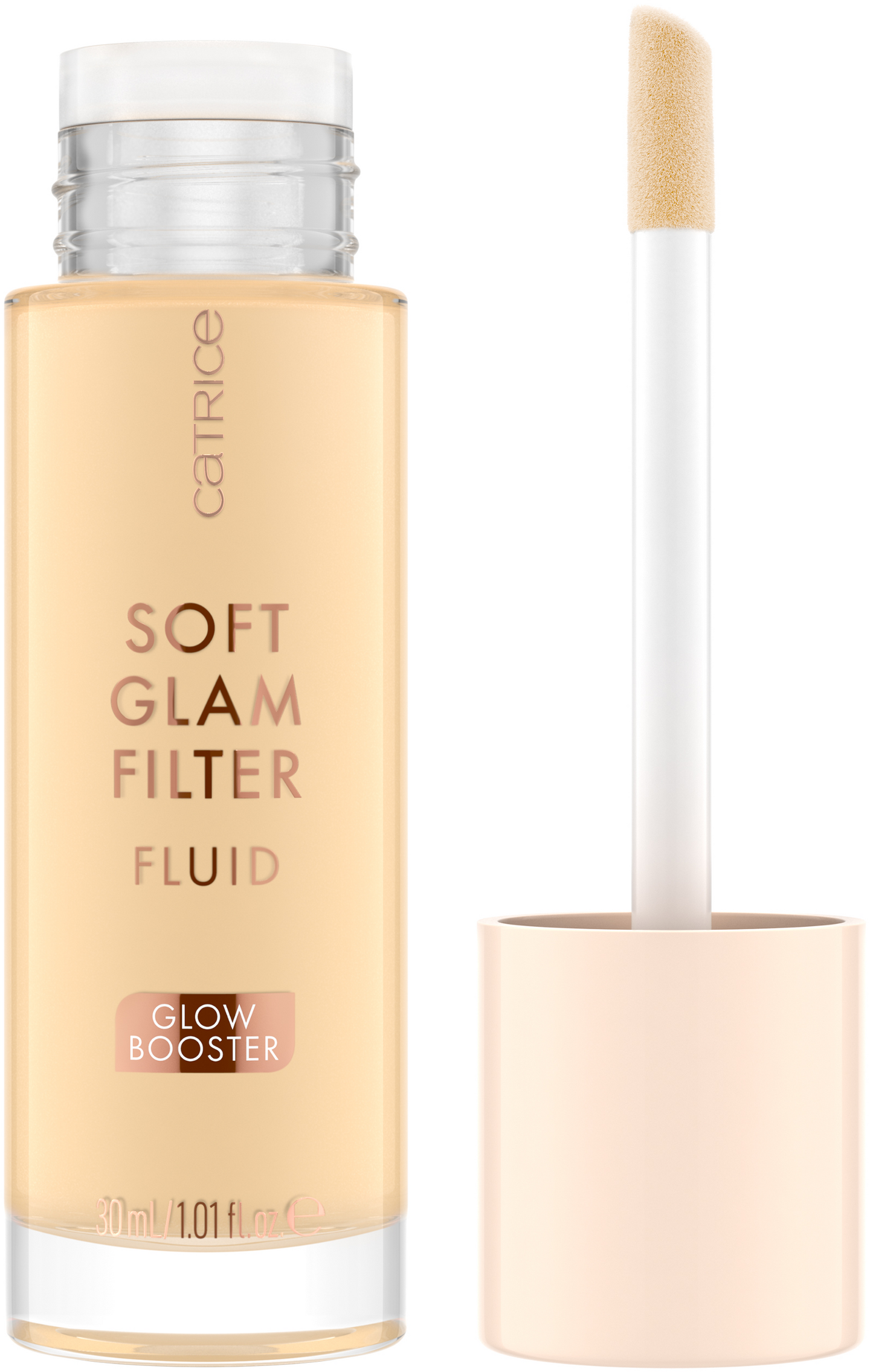 Pehmeästi sävytetty, hohtava CATRICE Soft Glam Filter Fluid antaa kasvoillesi pehmeän ”glam-filter" vaikutelman, joka tekee ihosta pehmeän, täydellistetyn ja säteilevän. Ja se on todellinen monitaituri: Nestettä voidaan levittää yksinään, pohjusteena meikin alle tai päälle tai asettaa kohdennettuja korostuksia. E-vitamiinia ja skvalaania sisältävä koostumus myös ravitsee ja kosteuttaa ihoa.