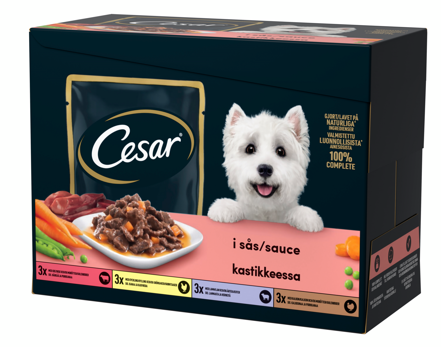 Jaa suurenmoisen ruoan ilo Cesar Pouch Selection kastikkeella, joka on helppo tarjoilla ja täydellinen pienille koirille. Nämä herkullisen terveelliset ja tuoreet ateriat on valmistettu huolellisesti valikoiduista, luonnollisista raaka-aineista, tarjoten koirallesi 100% täyden ravinnon sen tarpeisiin pysyä onnellisena ja terveenä.
