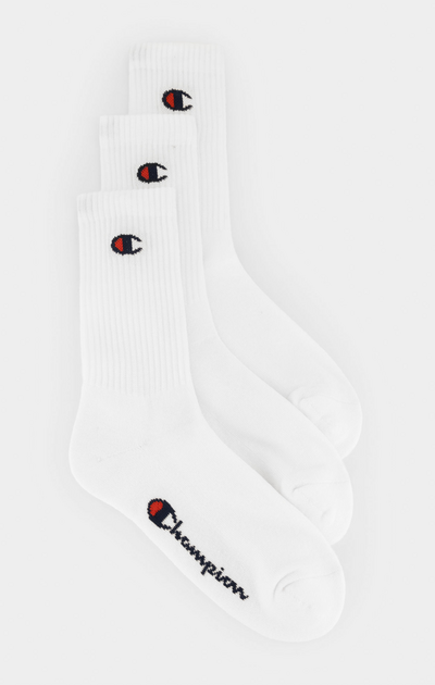Champion Crew-sukkapaketti tarjoaa kolme paria korkealaatuisia puuvillasukkia, jotka yhdistävät mukavuuden, kestävyyden ja tyylikkyyden. Sukissa on klassinen Champion-logo nilkassa.