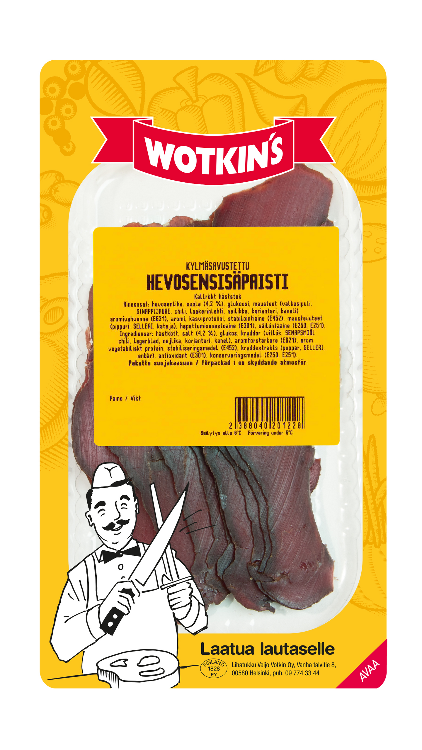 Chef Wotkins Kylmäsavustettu Hevosen sisäpaisti 100g, siivutettu