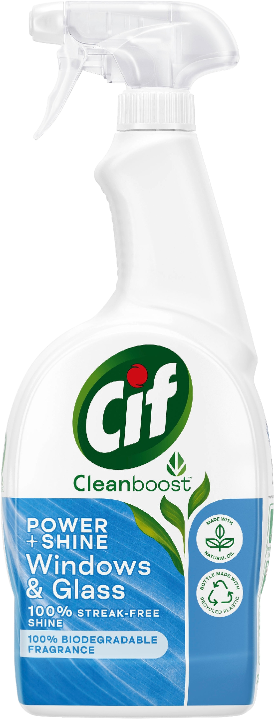 Cif Ikkuna & Lasi -puhdistussuihke sopii kaikille kodin lasi- ja peilipinnoille. Suihkauta ja pyyhkäise – nauti täydellisen kiiltävästä puhtaudesta ilman raitoja. Cif Ikkuna & Lasi -ikkunasuihke on erityisesti lasipinnoille ja ikkunoille kehitetty pesuaine. Sen tehokkaat ja syväpuhdistavat molekyylit poistavat välittömästi vesitahrat ja lian ikkunoista, laseista ja peileistä. Se jättää myös raikkaan tuoksun. Cif Ikkuna & Lasi -puhdistussuihke ikkunoille ja lasipinnoille on perusteellinen puhdistaja, jolla pyyhkäiset nopeasti ja helposti pois ärsyttävät sormenjäljet kotisi ikkunoista ja peileistä. Nauti kiiltävästä ja puhtaasta tuloksesta, ei raitoja tai tympeää hajua. Kaunis ja puhdas ympäristö tekee meidät onnelliseksi. Se levittää puhdasta iloa. Cif auttaa meitä tuomaan ympäröivän kauneuden esiin. Emme vain siivoa keittiötäsi, kylpyhuonettasi ja taloasi, vaan puhdistamme ne, jotta niiden parhaat puolet tulisivat esiin. Tietysti teemme sen ihmistä ja ympäristöä ajatellen. Siksi käytämme kylpyhuonesuihkeessamme luonnollisia puhdistusaineita. Lisäksi suihkepullo on 100 % kierrätettyä muovia. Muovin käytön vähentämiseksi, voit nyt ostaa myös Cif Ecorefill Power & Shine Universal -täyttöpakkauksen. Sen avulla voit käyttää samaa suihkepulloa jopa loppuelämäsi ajan. Älykäs tapa säästää rahaa ja luonnonvarjoja. Cif Power & Shine ikkunasuihkeen lisäksi valikoimaamme kuuluvat muun muassa Cif Desinfect & Shine Desinfiointipyyhkeet, Cif Cleaning Wipes Ocean yleispuhdistusliina, Cif Cleaning Spray Power & Shine Bathroom puhdistussuihke, joka on tarkoitettu kylpyhuoneen puhdistukseen ja Cif Cleaning Cream Lemon puhdistusaine. Ja tässä vasta osa tuotteistamme.