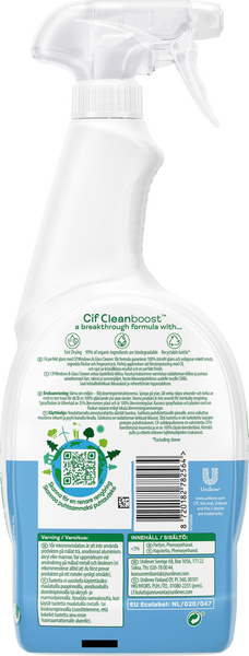 Cif Ikkuna & Lasi -puhdistussuihke sopii kaikille kodin lasi- ja peilipinnoille. Suihkauta ja pyyhkäise – nauti täydellisen kiiltävästä puhtaudesta ilman raitoja. Cif Ikkuna & Lasi -ikkunasuihke on erityisesti lasipinnoille ja ikkunoille kehitetty pesuaine. Sen tehokkaat ja syväpuhdistavat molekyylit poistavat välittömästi vesitahrat ja lian ikkunoista, laseista ja peileistä. Se jättää myös raikkaan tuoksun. Cif Ikkuna & Lasi -puhdistussuihke on perusteellinen puhdistaja, jonka avulla ikkunanpesu sujuu helposti. Tämän suihkeen avulla pyyhkäiset nopeasti ja helposti pois ärsyttävät sormenjäljet kotisi ikkunoista ja peileistä. Nauti kiiltävästä ja puhtaasta tuloksesta, ei raitoja tai tympeää hajua. Kaunis ja puhdas ympäristö tekee meidät onnelliseksi. Se levittää puhdasta iloa. Cif auttaa meitä tuomaan ympäröivän kauneuden esiin. Emme vain siivoa keittiötäsi, kylpyhuonettasi ja taloasi, vaan puhdistamme ne, jotta niiden parhaat puolet tulisivat esiin. Tietysti teemme sen ihmistä ja ympäristöä ajatellen. Siksi käytämme kylpyhuonesuihkeessamme luonnollisia puhdistusaineita. Cif Ikkuna & Lasi -puhdistussuihkeelle onkin myönnetty EU:n ympäristömerkki. Lisäksi suihkepullo on 100 % kierrätettyä muovia. Muovin käytön vähentämiseksi, voit nyt ostaa myös Cif Ecorefill Power & Shine Universal -täyttöpakkauksen. Sen avulla voit käyttää samaa suihkepulloa jopa loppuelämäsi ajan. Älykäs tapa säästää rahaa ja luonnonvarjoja. Cif Power & Shine ikkunasuihkeen lisäksi valikoimaamme kuuluvat muun muassa Cif Desinfect & Shine Desinfiointipyyhkeet, Cif Ikkuna & Lasi -puhdistusliina, Cif Cleanboost Bathroom puhdistussuihke, joka on tarkoitettu kylpyhuoneen puhdistukseen ja Cif Cleaning Cream Lemon puhdistusaine. Ja tässä vasta osa tuotteistamme.
