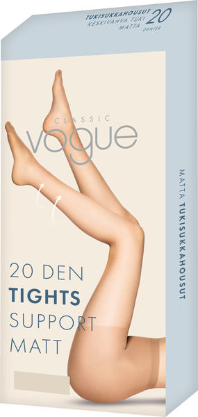 Klassiset 20 den tukisukkahousut keskivahvalla tuella. Asteittain nilkalta kevenevä tuki auttaa jalkojasi pysymään virkeinä ja tuntumaan kevyiltä koko päivän riippumatta siitä vietätkö sen istuen, seisten vai matkustaen. Materiaali 85%polyamidi, 15%elastaani (Lycra).