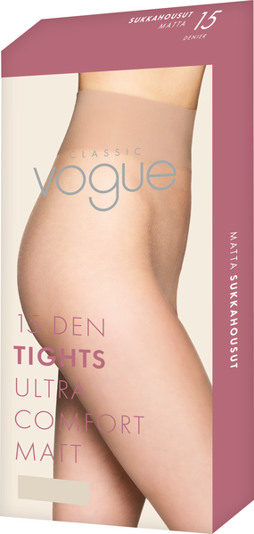 Modernit 15 denierin matta sukkahousut. Hienostuneet, mattapintaiset sukkahousut saavat sääresi näyttämään luonnollisen kauniilta. Leveä ja miellyttävä vyötärönauha takaa täydellisen käyttömukavuuden. Materiaali 88%polyamidi, 12%elastaani.