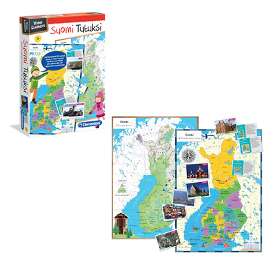 Opettele maantietoa hauskalla tavalla. Kokoa karttapalapeli ja tutki Suomen kaupunkien sijaintia ja järvien määrää. Pakkaus sisältää kaksi karttapalapeliä (104) ja 32 kaupunkikorttia. Ikäsuositus yli 7-vuotiaille.