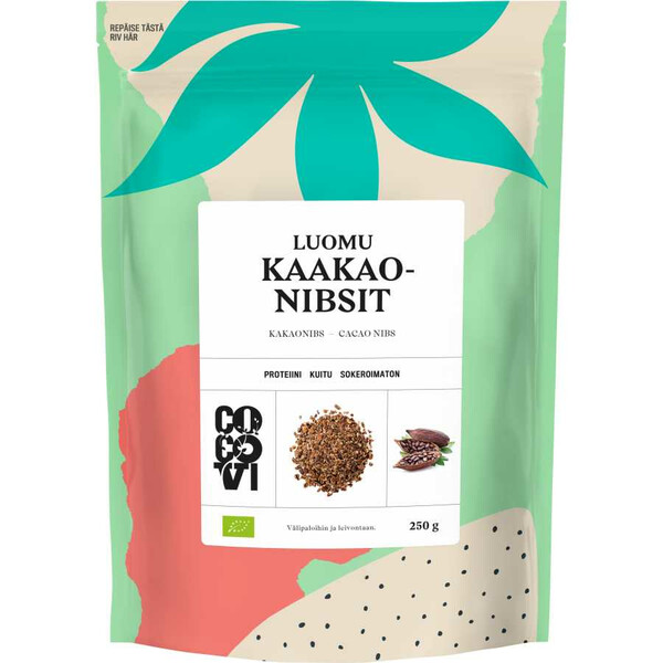 CocoVin kaakaonibsit ovat luonnonmukaisesti tuotetuista, kuorituista kaakaopavuista murskattua rouhetta. Kaakao sisältää runsaasti suojaravinteita -se on pullollaan magnesiumia ja kaliumia.