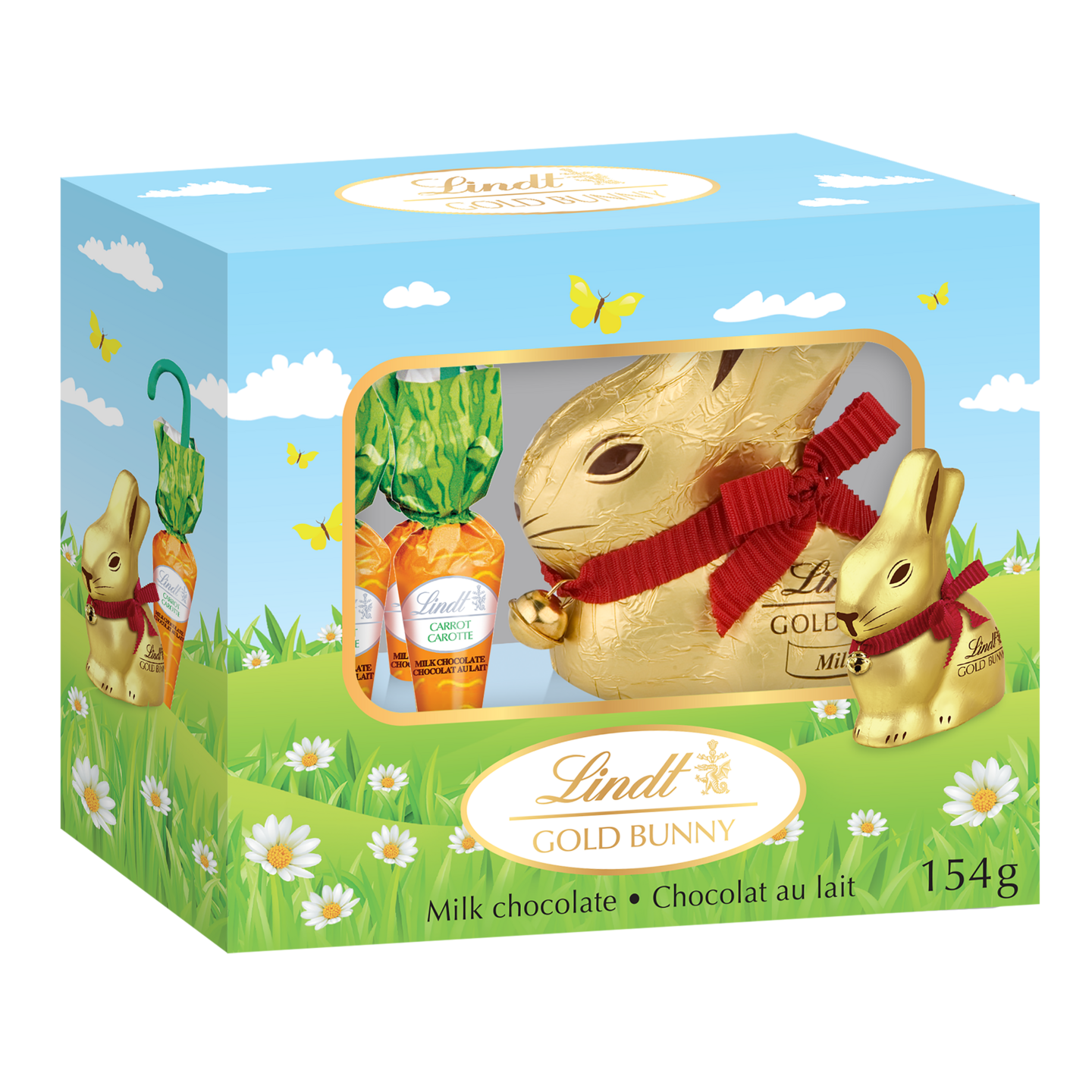 Tuo pääsiäiseen lisää taikaa Lindt GOLD BUNNY Milk & Carrots -maitosuklaalla. Pakkaus sisältää Lindtin klassisen GOLD BUNNY 100g -suklaapupun ja neljä porkkanaa hienoimmasta maitosuklaasta. Lindt Suklaamestarit ovat kehittäneet tämän hienon pääsiäislahjan, jota on saatavana rajoitettu erä. GOLD BUNNY on päällystetty kultaisella foliolla ja kaulan ympärillä sillä on punainen nauha, jossa on pieni kultainen kello. Se sopii mainiosti pääsiäiskoristeeksi tai vaikka pääsiäisen munajahdin loppuhuipennukseksi, jossa porkkanat johtavat kultapupun luo. Lindt Suklaamestarit ovat kehittäneet nämä viehättävät pienet pääsiäishahmot sillä samalla asiantuntemuksella, jolla Lindt on valmistanut korkealaatuisinta sveitsiläisiä suklaata vuodesta 1845 lähtien.