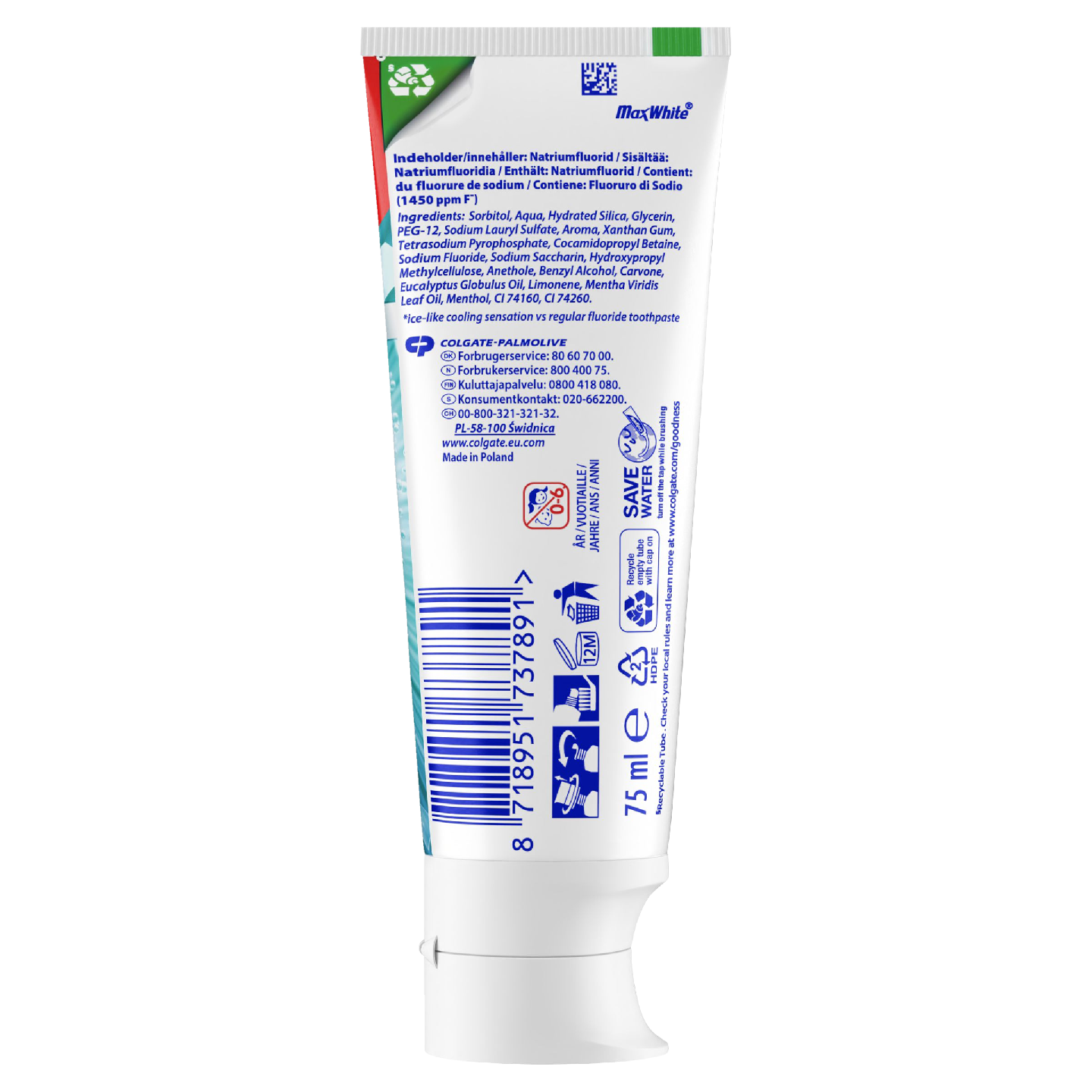 Pidä suusi terveenä ja hymysi kirkkaana Colgate Max White White + Crystals -hammastahnan avulla. Sen tehokas koostumus rikastaa hampaittesi luonnollista valkoisuutta samalla kun Ultrafreeze -teknologia tuo suuhusi raikkauden tunteen, joka kestää jopa 10 kertaa pidempään*. Hammastahna tulee kierrätettävässä tuubissa. *Verrattuna tavalliseen fluorihammastahnaan.