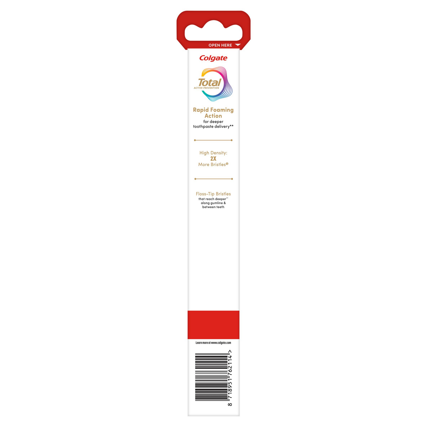 Voit hymyillä huoletta kun käytät Colgate Total Soft -hammasharjaa. Tämä hammasharja on suunniteltu erityisesti osaksi aktiivista ennaltaehkäisyä auttamalla taistelemaan reikiintymisen, hammasplakin, ienongelmien, pahanhajuisten hengityksen, hammaskiven kertymisen ja pinnallisten värjäytymien yleisintä aiheuttajaa¹ vastaan. Hammasharja vaahdottaa tahnan tehokkaasti², mikä auttaa sitä leviämään kaikkille suun alueille. Ohutkärkiset harjakset puhdistavat paremmin² ienrajasta ja hammasväleistä. Nämä harjakset ovat myös aseteltu erityisen tiheään, joten niitä on harjaspäässä 2X enemmän³. ¹Auttaa poistamaan plakkia säännöllisessä käytössä ²Vs. tavallinen tasaharjaksinen hammasharja. Ei korvaa hammasvälien puhdistamista. ³Vs. Colgate Extra Clean Hammasharja