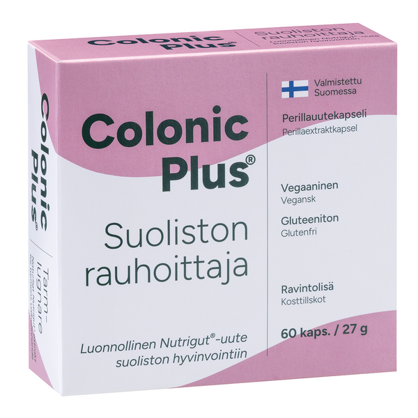 Colonic Plus® Suoliston rauhoittaja sisältää perilla-kasvista (Perilla frutescens) valmistettua Nutrigut®-uutetta, joka on standardoitu kahden vaikuttavan aineen, viseniini 2:n ja rosmariinihapon, suhteen. Luonnollinen Nutrigut®-perillauute tukee suoliston.