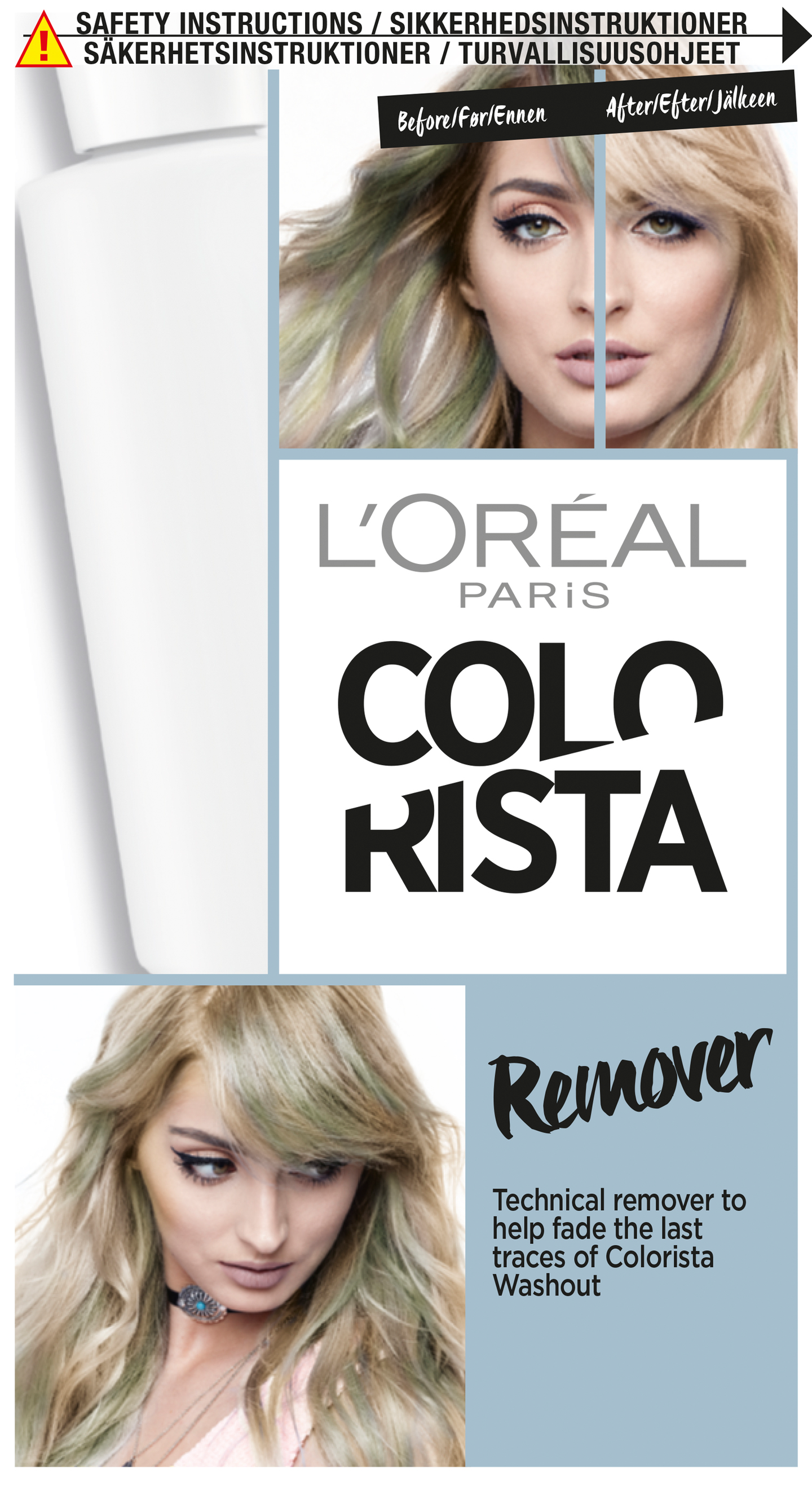 Vaihda väriä mielesi mukaan! Käytä Colorista Removeria haalistaaksesi Colorista Washout -hiusvärin jäämiä. Remover poistaa viimeisetkin siniset ja vihreät vivahteet. Ei sovi ruskeille tai harmaille hiuksille. Vaikutusaika 30 min. Katso tarkemmat käyttöohjeet pakkauksesta. Noudata käyttöohjeita tarkasti.