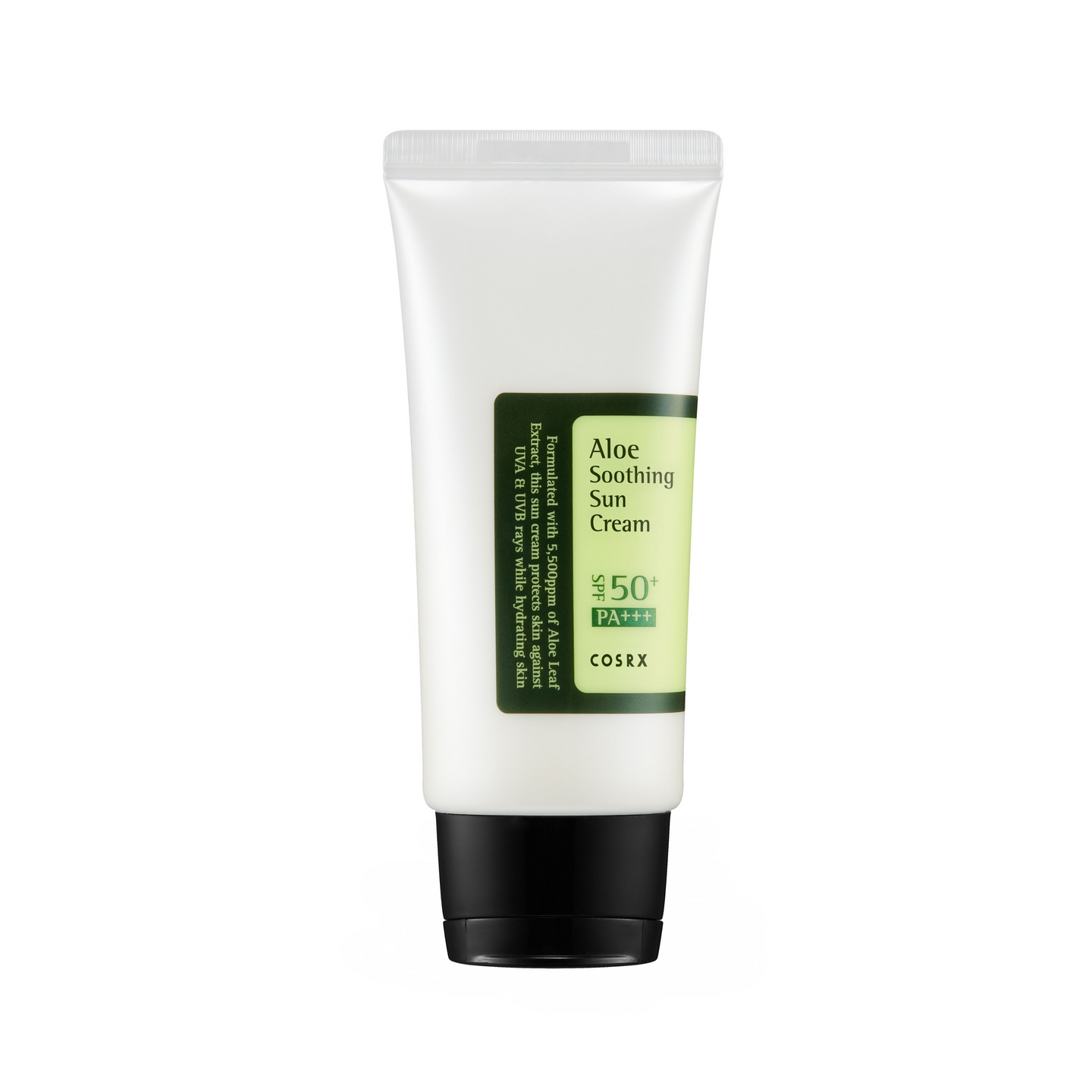 Ihoa rauhoittava ja kosteuttava aurinkovoide, joka sisältää sekä fysikaalisen että kemiallisen suojan UV-säteilyä vastaan. COSRX Aloe Soothing Sun Cream on päivittäiseen käyttöön sopiva aurinkovoide korkealla suojakertoimella SPF50 PA+++. Tämä tuote on yksi korealaisen kosmetiikan suosituimmista aurinkovoiteista. Voide ei jätä ihoa kuivaksi, vaan sen sisältämä aloe veran lehtiuute kosteuttaa ja rauhoittaa ihoa. Kosteuttavista ominaisuuksistaan huolimatta aurinkovoide ei jätä valkoista kerrosta (white cast) tai öljyistä pintaa iholle. Soothing Sun Cream -aurinkovoide sopii kaikille ihotyypeille käytettäväksi ympäri vuoden.