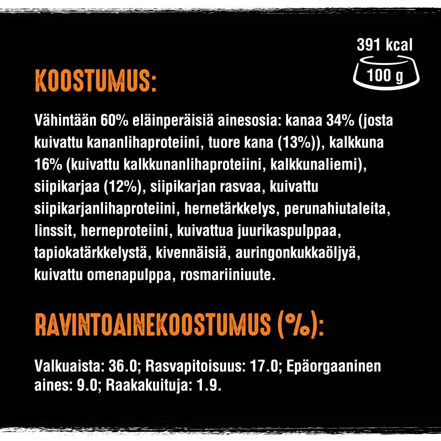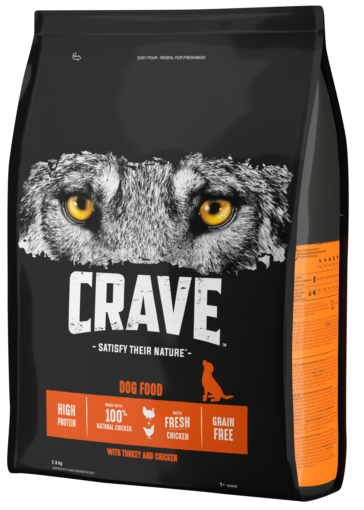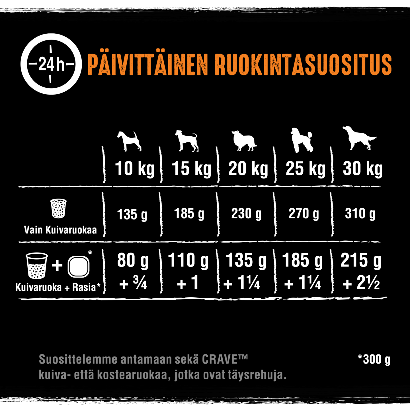CRAVE™ on proteiinipitoinen ruokavalio koirallesi, joka imitoi koirien villien esivanhempien ruokavaliota. Täysravinto, joka sisältää vähintään 60% proteiinipitoisia eläinperäisiä ainesosia, kuten kalkkunaa ja kanaa. CRAVE™ koiran kuivaruoka on viljaton. - Liha on tärkein ainesosa: Vähintään 60% eläinperäisiä ainesosia - Korkea proteiinipitoisuus: 34% proteiinia, koirien villien esivanhempien ruokavalion innoittamana - Viljaton: ei maissia, vehnää tai soijaa, eikä keinotekoisia makuja, värejä tai aromiaineita - Proteiinipitoinen täysravinto, joka sisältää koirasi tarvitsemat korkealaatuiset ravintoaineet INSPIRED BY A DOG'S INSTINCTIVE DIET CRAVE™. SATISFY THEIR NATURE.™ Tiedostamme että koirat haluavat maukkaan, proteiinipitoisen ruokavalion - ja syy siihen on yksinkertainen. Proteiinirikas ravinto tarjoaa ravintoaineet vahvalle ja terveelle koiralle sekä oikean määrän energiaa leikkiin. Villien esivanhempiensa ruokavalion tapaan, CRAVE™ on herkullinen koiranruoka, joka tehdään laadukkaasta eläinproteiinista ja viljattomana.