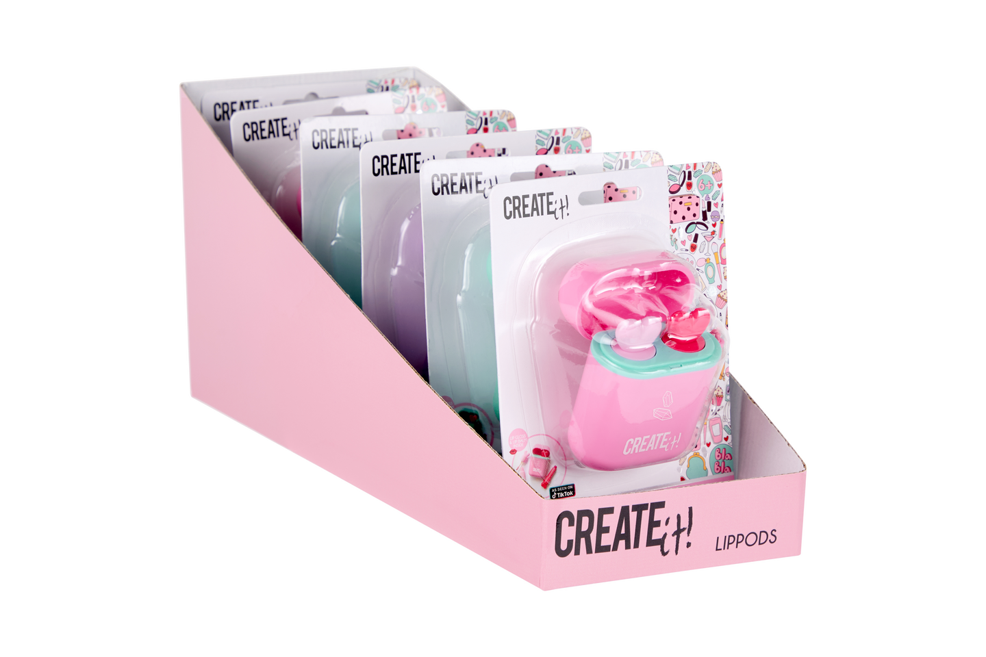 Create It! Huulikiilto ja Huulirasva hauskassa kuulokerasiassa. Lajitelmassa kolme eri väriä. Ikäsuositus 6+