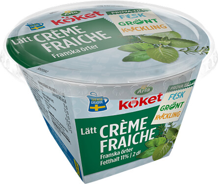 Crème fraîche 13% smaksatt med klassiska franska örter som timjan, dragon, basilika, oregano och vitlök. Med sin milda friska smak och krämiga konsistens är den en bra hjälp i vardagsmatlagningen. Produkten går att koka och kan med fördel användas i soppor, grytor, pannrätter och pasta, men även som kall sås. Den passar utmärkt till fisk, kyckling, fläskkött och grönsaker.