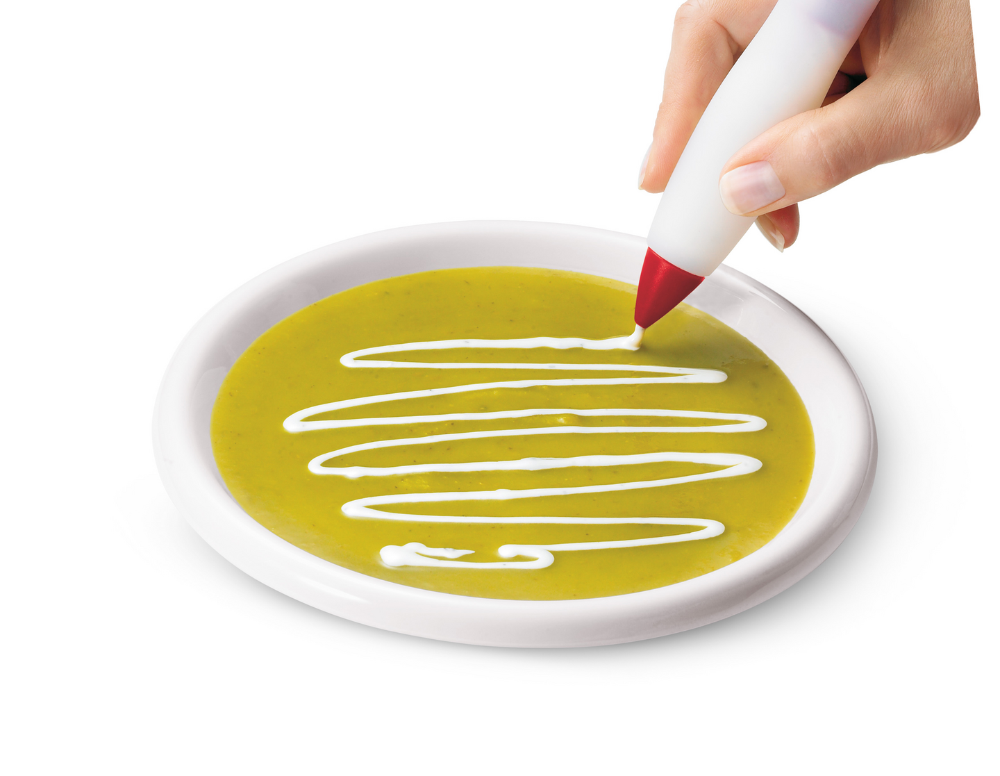 Cuisipron koristelukynällä koristelu sujuu näppärästi ja helposti - kuin kynällä kirjottaisi. Koristelukynää voi käyttää todella monipuolisesti, sillä leivonnaisten, kakkujen ja piparien, lisäksi sillä voi koristella esim. salaatit, keitot ja jälkiruoat. Kaksi erilaista pursotinnokkaa, tilavuus 16 ml.