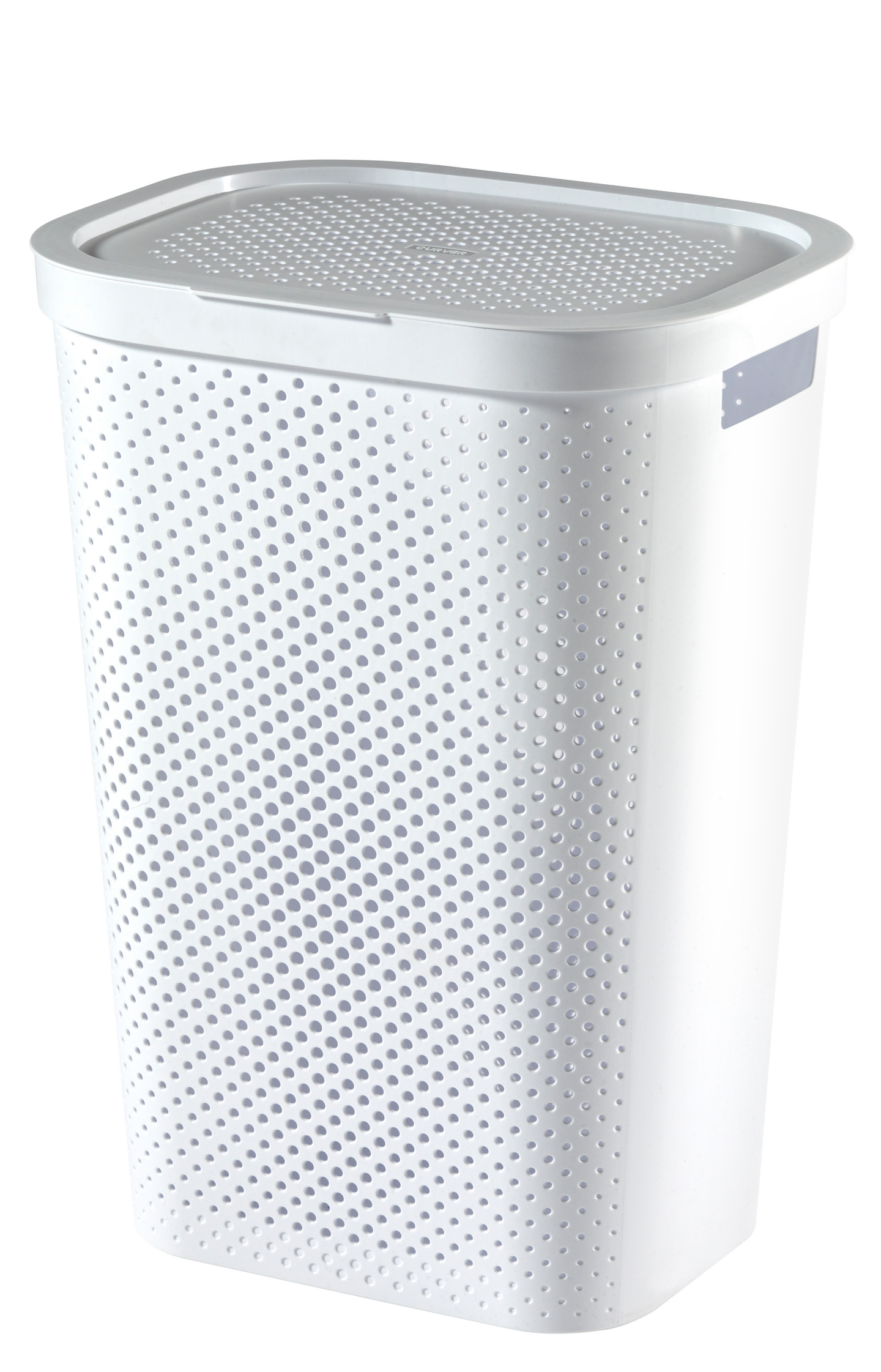 Curver valkoisessa 40 litran Infinity Dots mankelikorissa on kaunis ja ilmava reikäkuvio.