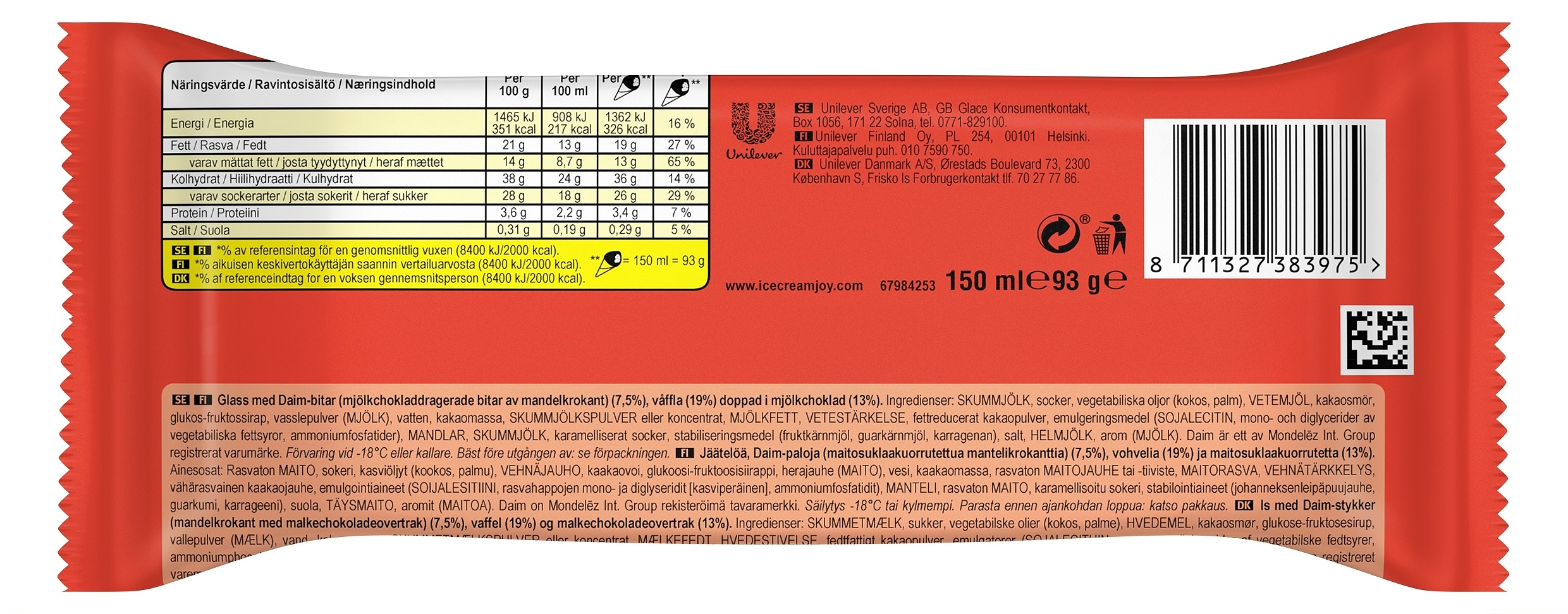 Heartbrand jäätelötuutti Daim 93g/150ml