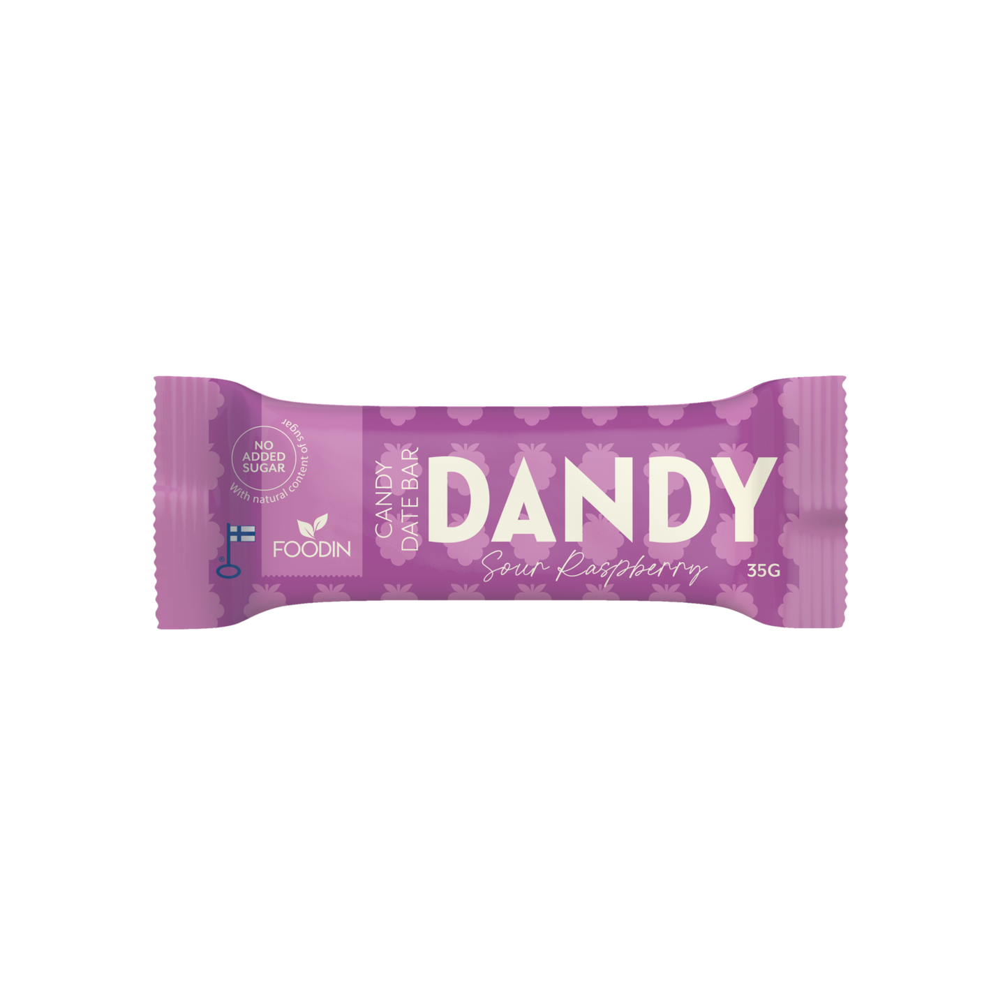 Jos kirpeän ja makean yhdistelmä kutkuttelee makuhermojasi, Foodin Dandy Candy Sour Raspberry -karkkitaatelipatukka on nappi valinta aidosti parempaan herkutteluun! Taateleiden luonnollinen makeus ja kirpeän raikas vadelma ovat vastustamaton makupari, joka muistuttaa karkkihyllyn suosikkejasi – mutta paremmin valmistettuna. Dandy Candy -karkkitaatelipatukat sisältävät vain luonnollisia ainesosia, eikä niihin ole lisätty valkoista sokeria, palmuöljyä tai keinotekoisia makeutus- ja väriaineita. Dandy Candy -karkkitaatelipatukka on välipala, joka sopii mihin tahansa hetkeen: makeanhimoon, retkelle, välipalaksi tai treenin jälkeiseksi taikka aikaiseksi energiaboostiksi. Aina, kun tekee mieli jotain pientä hyvää!