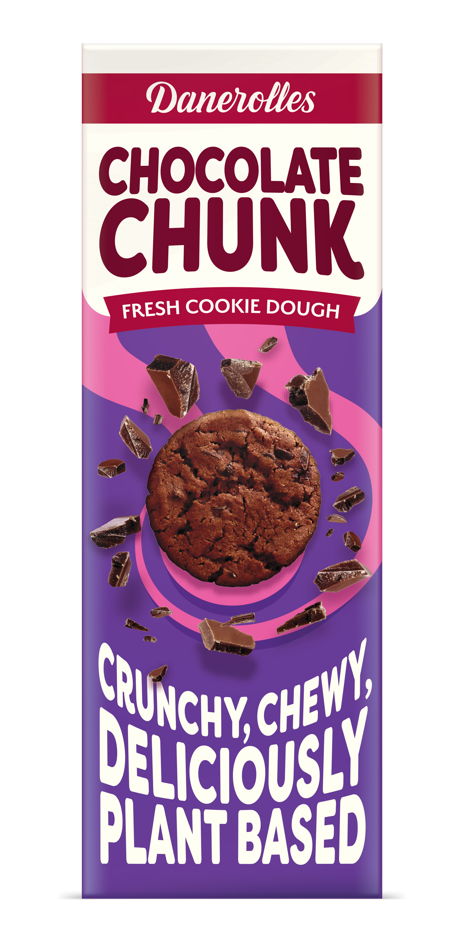 Paistovalmis suklaakeksitaikina kahdeksan herkullisen keksin valmistukseen, vegaaninen. Leikkaa, paista ja nauti! Keksit voi paistaa kahdella eri tavalla: 16 min jos haluat kekseistä rapeita tai 12 min jos haluat kekseistä meheviä. Muistathan, että Danerolles-tuotteet tulee säilyttää jääkaapissa.