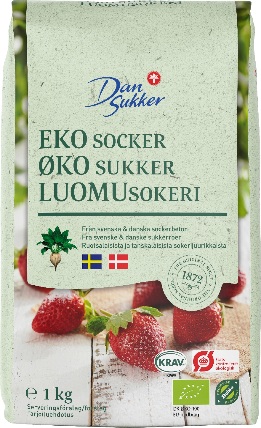 Dansukker Luomusokeri on valkoista kidesokeria yleiskäyttöön. Se on valmistettu Tanskassa ja Ruotsissa luomuviljellyistä sokerijuurikkaista. Pakkaus on 1 kg:n paperipussi. Käytä luomusokeria monipuolisesti leivontaan, jälkiruokiin, ruoanvalmistukseen ja säilöntään.