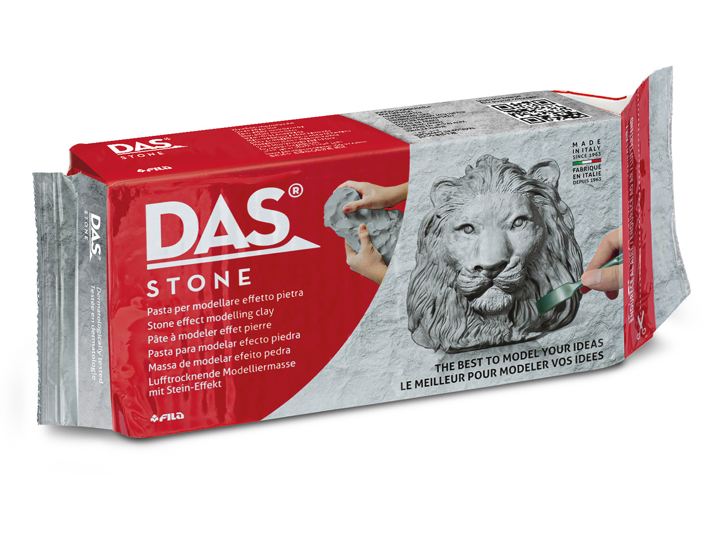 Keramiikasta koriste-esineisiin, askartelutöistä lahjoihin! Kestosuosikki DAS-muovailumassa on ilmassa kuivuvaa, kovettuvaa muovailumassaa. Heti käyttövalmis ja helppokäyttöinen massa soveltuu monipuolisesti erilaisiin projekteihin ja eri pinnoille – kuten puulle, metallille ja lasille. Dermatologisesti testattu ja gluteeniton massa. Kuivumisaika riippuu teoksen koosta, mutta yleensä kuivumiseen on hyvä varata noin 24 tuntia. Kuivunut teos voidaan koristella mitä mielikuvituksellisin keinoin, esimerkiksi askartelumaaleilla tai sesongin koristeilla. Muovailu kostutetuin käsin, sulje pakkaus huolellisesti käytön jälkeen. Helppo pestä käsistä, ei tahmaa. Irtoaa myös useimmista tekstiileistä pesun yhteydessä.