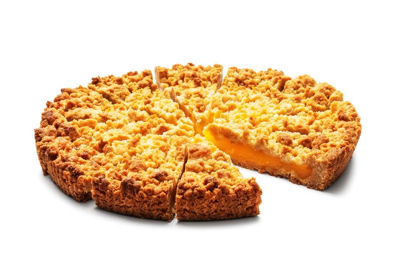 Klassinen käsin leivottu murupiirakka aidolla voilla. Täyte raikasta lemon curdia johon lisätty inkiväärinpaloja. Palmuöljytön. 12 palaa.