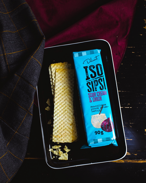 Deliciestin Iso Sipsi Sour Cream & Onion on paketillinen pitkiä perunalastuja. Sour Cream & Onion on klassikkomaku, jota ei yksinkertaisesti voi vastustaa. Nämä yllättävän pitkät ja rouskuvan rapeat sipsit on pakattu kätevän kokoiseen pakkaukseen, jotta voit herkutella missä ja milloin vain. Sopii myös vegaaneille!