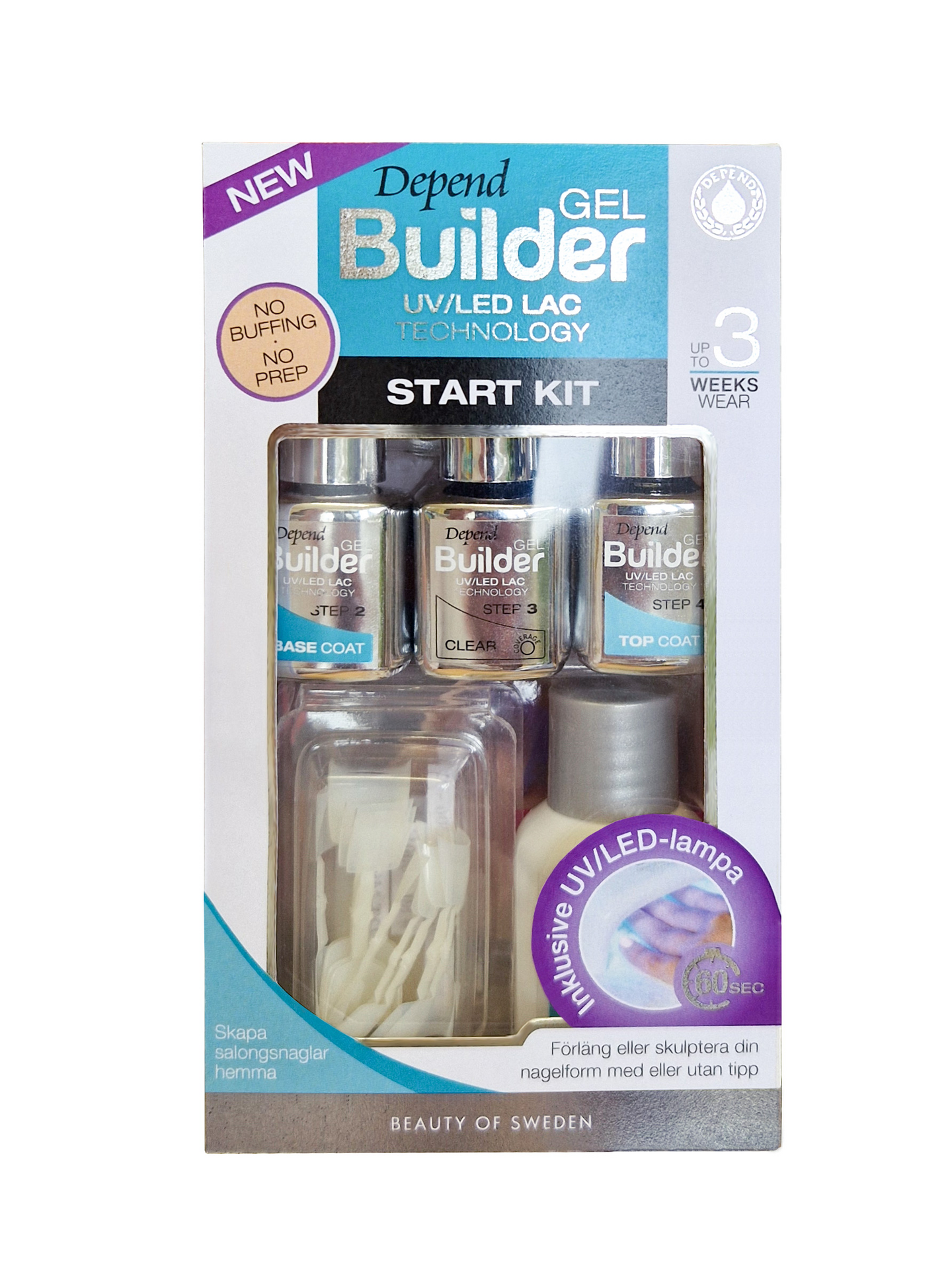 Gel Builder Startkit - aloituspakkaus. Tee ammattimaiset kynnet kotona muutamalla helpolla vaiheella! Muotoile ja vahvista luonnollista kynttäsi tai pidennä sitä kärjellä. Gel Builder -rakennegeelin avulla saat kynnet, jotka kestävät jopa kolme viikkoa. Geelin viskositeetin ansiosta voit joko pidentää tai vahvistaa kynttä ja geeli tasoittuu itsestään. Aloituspakkaus sisältää kaiken tarvitsemasi, ja pääset liikkeelle nopeasti ja helposti. NO PREP tarkoittaa, että sinun ei tarvitse valmistella omaa kynttäsi viilaamalla tai käyttämällä vahvoja pohjustustuotteita, jotka voivat heikentää kyntesi laatua. Gel Builder voidaan poistaa kahdella eri tavalla. Tapa 1 on hellävarainen kynnelle, sillä materiaali irrotetaan erityisen kasviöljyn ja lämpimän vesihauteen avulla. Tapa 2 sopii paremmin kuiville kynsille, jotka on hyvä puhdistaa poistoaineella. Voit poistaa vahvistavan lakkauksen käyttämällä tapaa 1 tai 2. Suosittelemme ensisijaisesti tapaa 1, joka sopii melkein kaikentyyppisille kynsille. Muille suosittelemme tapaa 2. Poista kärkipidennys käyttämällä tapaa 2. Lue koko käyttöohje ja turvallisuustiedot huolellisesti läpi ja noudata niitä sekä varmista, että sinulla on kaikki tuotteet ja tarvikkeet käyttövalmiina ennen käsittelyn aloittamista. Sisältö: Gel Builder Base Coat 5 ml, Gel Builder Top Coat 5 ml, Gel Builder Clear 5 ml, Gel Builder Cleanser 25 ml, kaksi kynsiviilaa, yhden appelsiinipuutikun, 22kpl Natural Look Short Cut Tip - kärki tippiä, 24 kpl Salon Size Flexi Fit -kärki tippiä, yhden kynsiliiman 2g roosanvärinen, LED/UV Lamppu ja adapteri sekä käyttöohjeet.