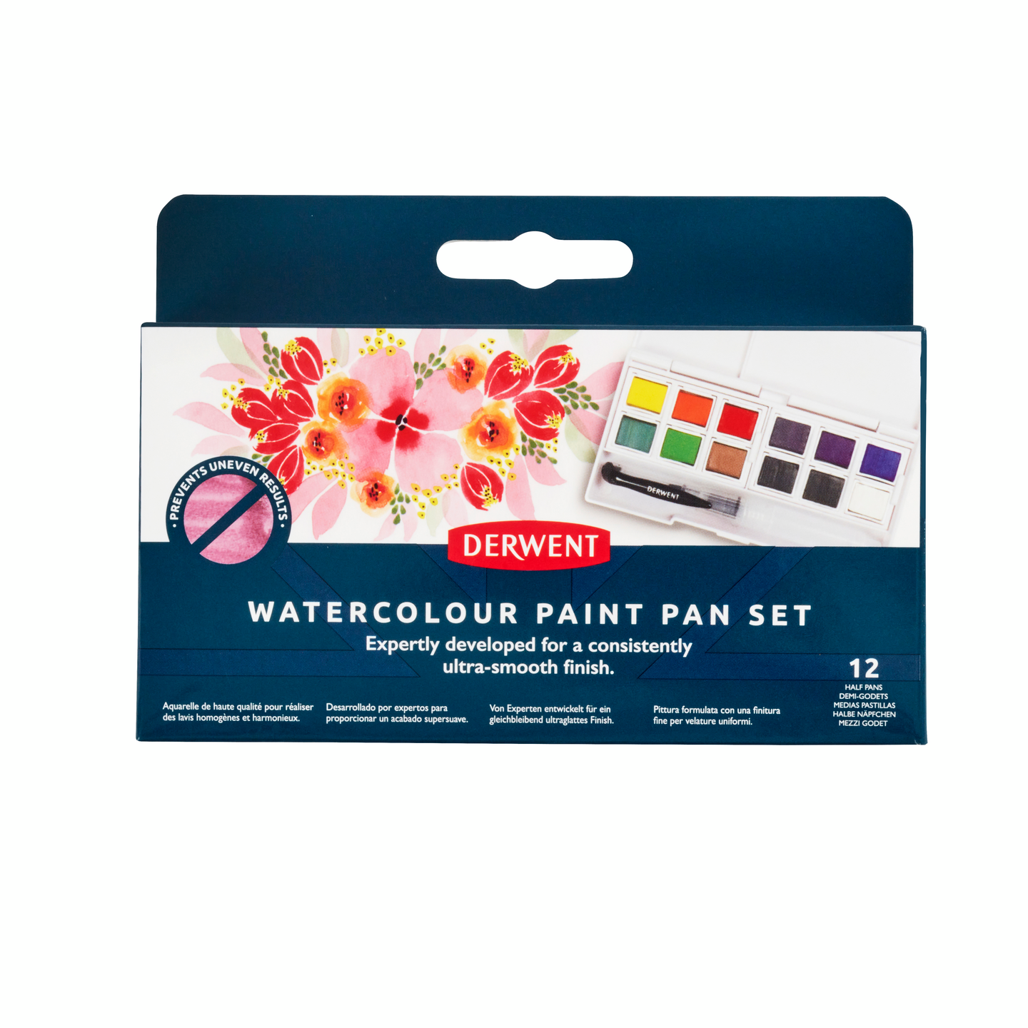 Löydä sisäinen taiteilijasi! Ammattilaistasoinen, laadukas akvarellivärilajitelma Derwentiltä. Valonkestäviä pigmenttejä sisältäviä värejä on helppo käyttää ja lopputulos on tasainen sekä hieman läpikuultava, vesiväreille ominaiseen tapaan. Lajitelma on pakattu kätevään pakkaukseen ja mukana on myös sekoituspaletti ja säiliösivellin. Soveltuu täydellisesti niin aloittelijoille kuin edistyneemmillekin taiteilijoille. Lajitelma sisältää sävyt: Lemon Cadmium, Orange, Poppy Red, Dark Violet, Ultramarine, Spectrum Blue, Bottle Green, Grass Green, Copper Beech Payne's Grey, Ivory Black, Chinese White.