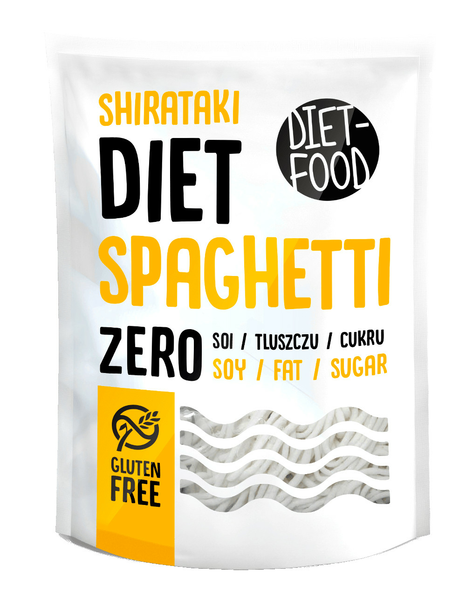 Diet Food Zero Spagetti sopii KETO- ruokavalioon! Nyt voit nauttia suosikki pastaasi vailla huolta hiilihydraateista. Diet Food Pastassa on vain 1,1 grammaa / 100g hiilihydraatteja verrattuna tavalliseen pastaan, jossa on 72,3g / 100g. Tässä spagetissa ei ole sokeria, rasvaa, viljoja, soijaa tai keinotekoisia väri- ja makuaineita. Lisäksi spagetti on GMO-vapaa ja gluteeniton. Sopii myös vegaaneille! Diet food ruokia ei voi pakastaa. Tuote säilyy huoneenlämmössä pakkauksessa olevaan päiväykseen asti ja avattuna jääkaapissa 2-3 päivää. Esikypsytetyt Diet Food -tuotteet valmistuvat vain kahdessa minuutissa keittämällä, höyryttämällä, uunissa tai pannulla. Nauti makusi mukaan kylmänä tai kuumana. Yhdestä pakkauksesta riittää 2-3 annokseen riippuen lisukkeista.