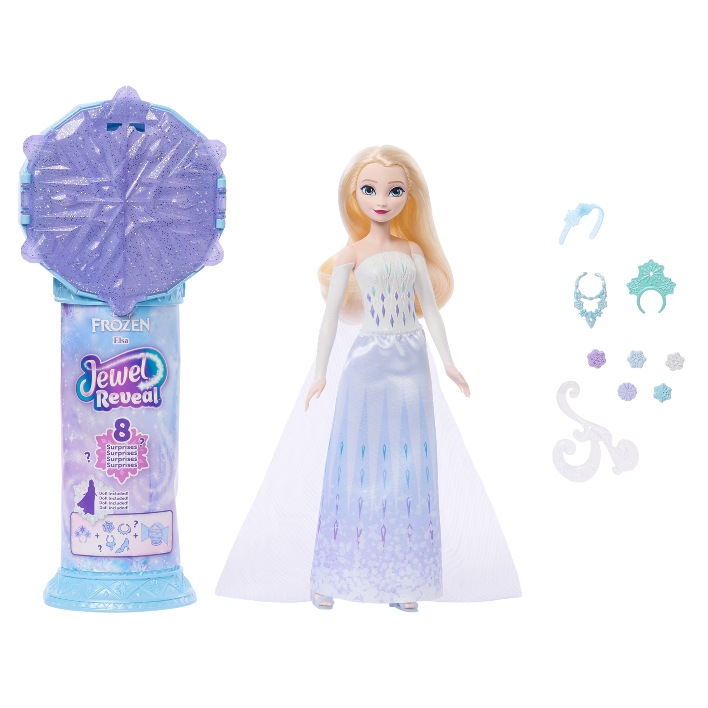 Lumihiutaleen muotoinen valtikka tuo mukanaan jäistä taikaa ja kätkee sisäänsä hurmaavan jääkuningatar Elsan. Avaa valtikan lumihiutale, irrota siitä itsellesi sormus ja paljasta kerros kerrokselta koruja, asusteita ja Elsa-muotinukke. Kiinnitä lumihiutale valtikan jalustaan ja saat jalokivirasian omille aarteillesi. Koristele Elsa mukana tulevilla timanteilla ja asusteilla ja anna Frozen-maailman herätä eloon. Ikäsuositus: 3+