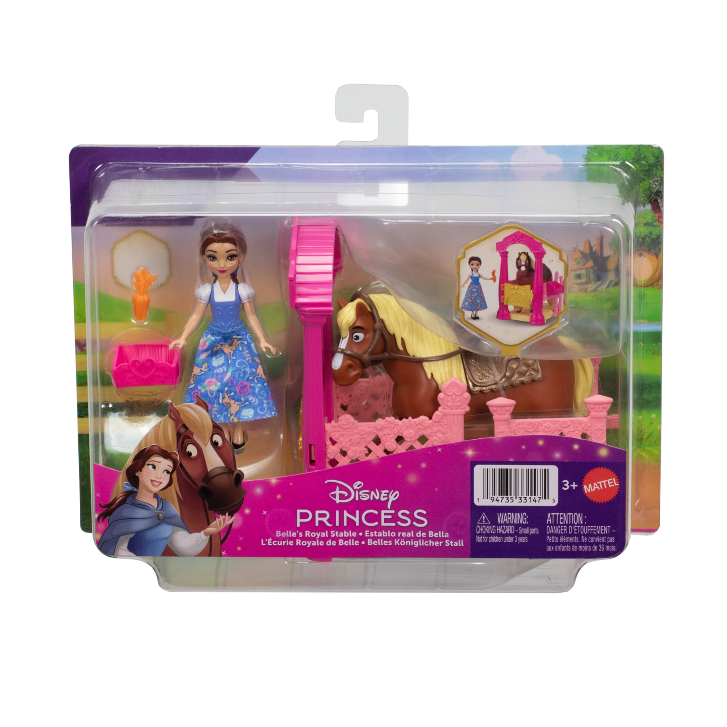 Disney Prinsessa hoitaa rakasta hevostaan sen omassa pilttuussaan. Pakkaus sisältää Disney Prinsessa -pikkunuken, hevosen, pilttuun sekä kaksi tarviketta. Useita erilaisia. 3+