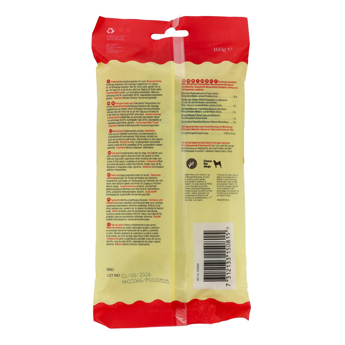 Puristetut puruluut herkullisella kanatäytteellä. Myös nirsoille koirille! Täyttää pureskelun tarpeen ja edistää hampaiden terveyttä. Valvo koiraa aina sen pureskellessa luita. A-luokan kanalla.