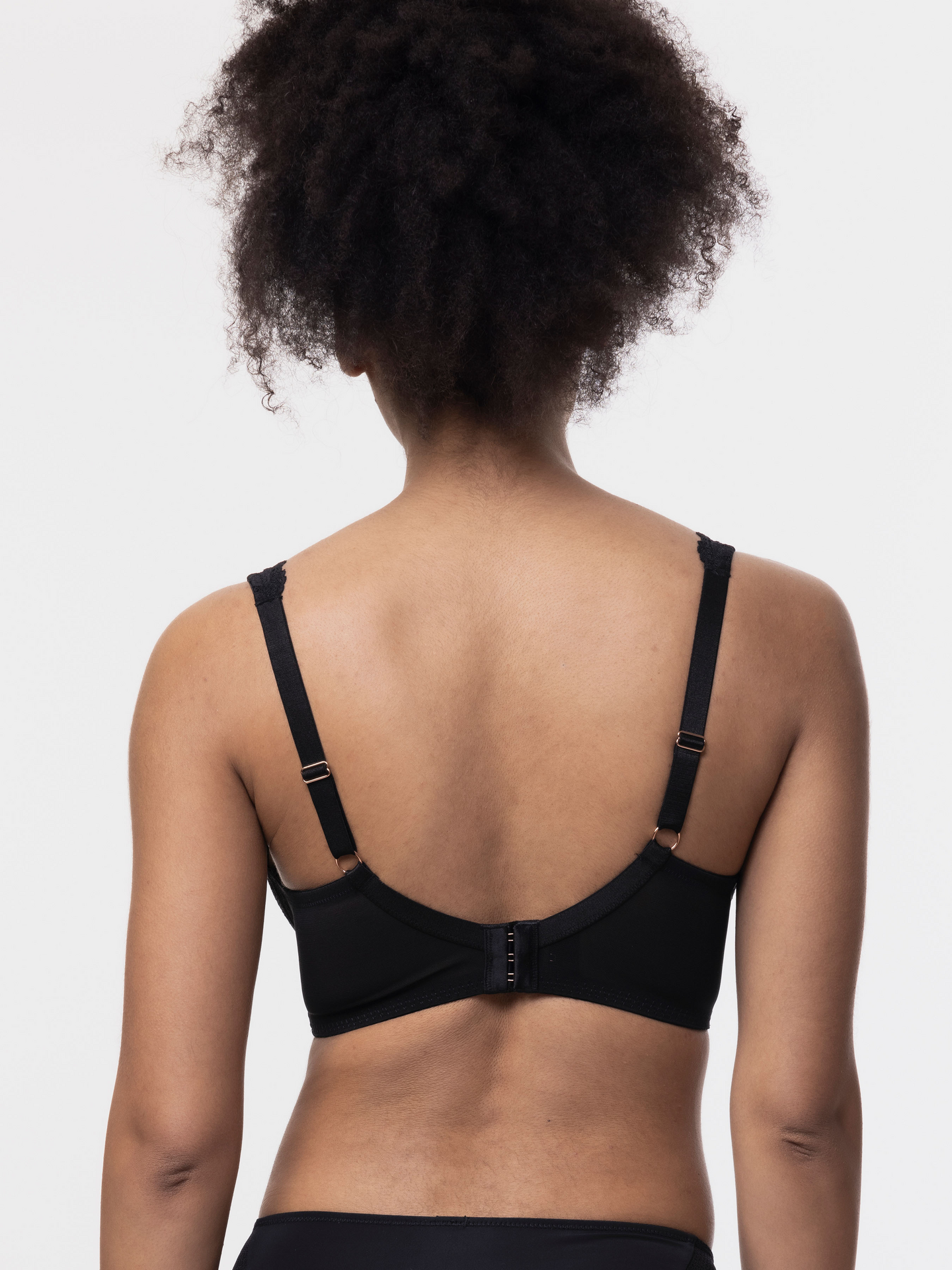 Toppaamattomat, kaarituettomat rintaliivit on valmistettu kierrätetystä materiaalista. Liivit ovat kevyet, mutta tukevat, koska kupin alla on tukea lisäävä nauha ja takaosa on u-mallinen. Mallissa leveät pitsisomisteiset olkaimet. Takana 3-hakainen kiinnitys.