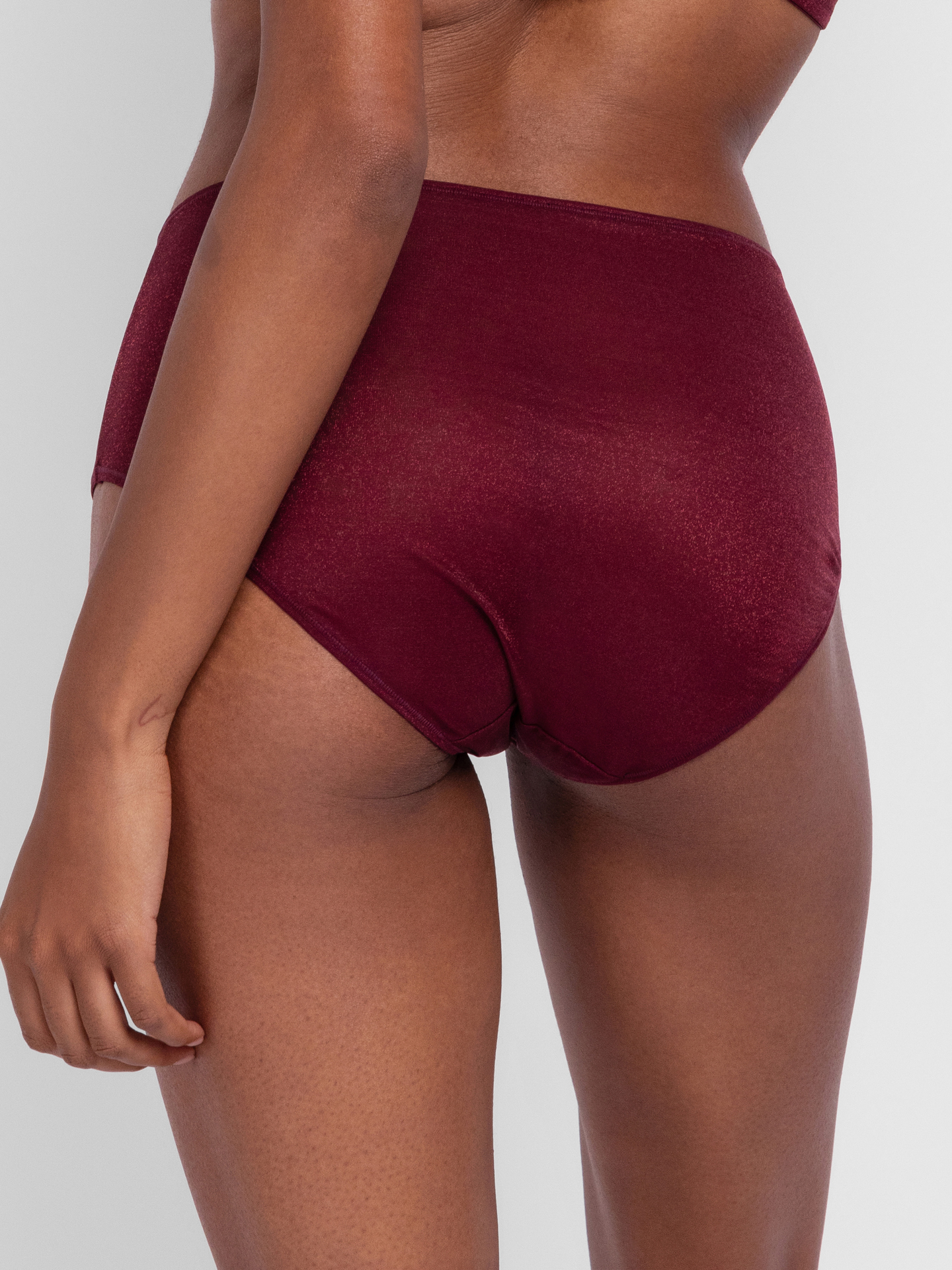 Dorina Origins midi-mallisissa alushousissa on upea hohtava pinta. Koristeena pieni metallilogo. Viini.