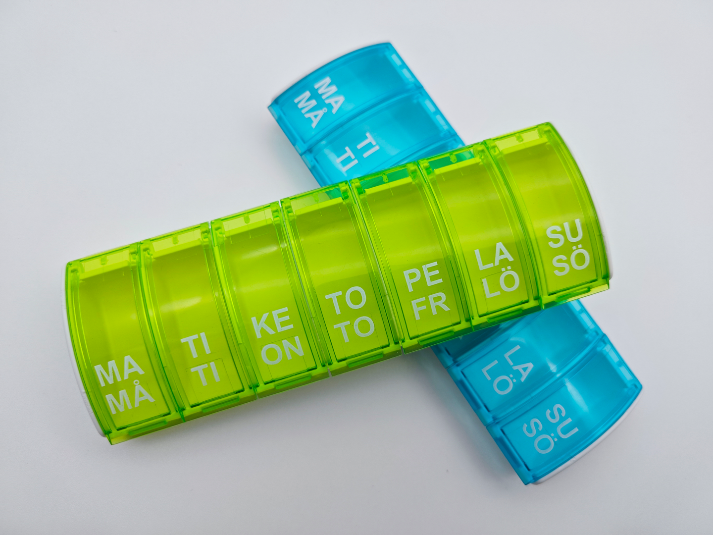 Kompakti lääkeannostelija (1x7pvä) säännöllisen lääkityksen tueksi kotiin tai matkalle.