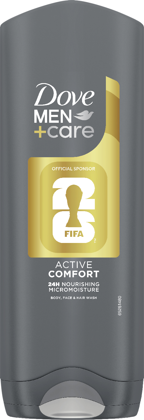 Dove Men+Care Active Comfort suihkugeeli 250 ml on hyväntuoksuinen suihkugeeli miehille, joka poistaa bakteerit ja hajut samalla kun se kosteuttaa ihoa ja suojaa sitä kuivumiselta, jättäen ihon raikkaaksi ja pehmeäksi. Ainutlaatuinen MicroMoisture-teknologia aktivoituu saippuan vaahdotessa ja auttaa säilyttämään ihon luonnollisen kosteuden sekä suojaa kuivumiselta.\ Hiero käsiä kevyesti vaahdon muodostamiseksi ja hiero suihkugeeliä vartaloon ja kasvoihin. Huuhtele huolellisesti. Dove Men+Care Total Comfortin avulla voit tuntea olosi raikkaaksi koko päivän – pitkään suihkun jälkeenkin.\ Tämä 250 ml suihkugeeli miehille on hellävarainen ihon mikrobiomille. Dove Men+Care Active Comfort on dermatologisesti testattu.\ Dove kasvoi kauneussaippuan valmistuksesta yhdeksi maailman rakastetuimmista kauneusbrändeistä – todisteiden, ei lupausten, ansiosta. Dove uskoo, että kauneus kuuluu kaikille, ja siksi Dove Men+Care luotiin. Se jatkaa tätä perintöä tarjoamalla tuotteita, jotka on kehitetty ja suunniteltu miehille – tietenkin samoilla huolehtivilla ominaisuuksilla, joita Dove aina tarjoaa.\ Dove Men+Care tarjoaa jokaiselle jotakin. Tutustu valikoimaan hoitavia ja kosteuttavia deodorantteja, suihkugeelejä tai shampoita. Pullo on valmistettu 100 % kierrätetystä muovista (paitsi korkki).\ Maailmanlaajuisesti Dove Men+Care ei koskaan testaa tuotteitaan eläimillä, ja se on PETA:n Cruelty-Free-sertifioima.
