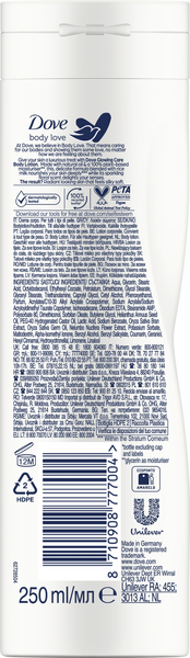 Haluatko hyödyntää samoja salaisuuksia, joita japanilaiset naiset ovat käyttäneet vuosisatojen ajan saadakseen pehmeän ja sileän ihon? Haluatko inspiroitua heidän tarkoista rituaaleistaan? Se onnistuu helposti. Hyödynnä rituaalien taustalla olevat luonnon inspiroimat ainesosat. Dove Body Love Glowing Ritual -vartalovoiteella on ihoa uudistava ja hyvin pehmentävä vaikutus. Se ravitsee ja kosteuttaa ihoa. Riisimaidon ja lootuksenkukan uutteita sisältävä ihovoide hoitaa ihoa tehokkaasti. Kaikille ihotyypeille.Runsaasti vitamiineja, proteiinia ja rasvaa sisältävä riisimaito on erinomainen luonnollinen kosteuttaja. Vaaleanpunaisissa lootuksenkukissa on puolestaan paljon ihoa rauhoittavia antioksidantteja. Tuoksu on ylellisen täyteläinen. Voide on dermatologisesti testattu, ja sen pullo on valmistettu 100 %:sti kierrätetystä muovista. Dove on aina saanut inspiraationsa naisilta. Olemme alusta alkaen tehneet kaikkemme tarjotaksemme naisille erittäin hoitavia tuotteita. Jo vuonna 1957, kun lanseerasimme ainutlaatuisen Beauty Bar -palasaippuamme, lupasimme, ettei se kuivata ihoa samalla tavalla kuin tavallinen saippua. Doven mielestä kauneus kuuluu kaikille. Doven mielestä kauneus kuuluu kaikille. Kauneuden tulee Doven mielestä olla mukava asia eikä aiheuttaa huolta ja pahaa mieltä. Siksi Dove on ottanut tehtäväkseen inspiroida naisia ympäri maailmaa luomaan myönteisen suhteen omaan ulkonäköönsä. Doven tuotteita ei myöskään koskaan testata eläimillä missään päin maailmaa. Yritys on saanut PETA Vegan Cruelty Free -sertifioinnin.