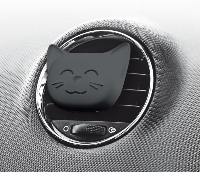 Kissamaisen tyylikäs hajuste. Hajuste on helppo kiinnittää joko klipsillä ilmastointiritilään tai narulla roikkumaan.