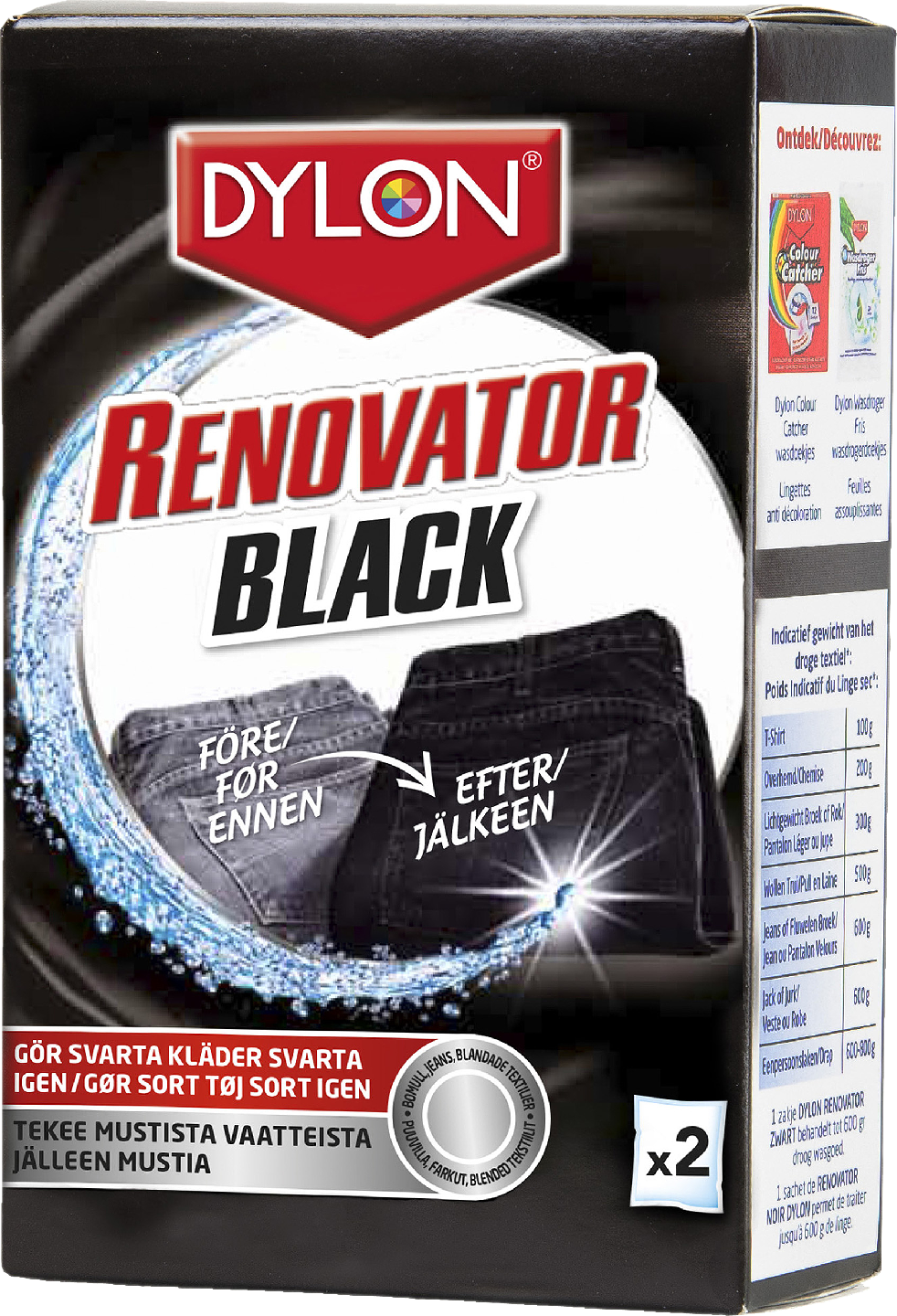 Helppo tapa uudistaa mustat vaatteet. Palauttaa pyykin alkuperäisen mustan värin. Ei vaadi koneen tyhjäpesua värjäyksen jälkeen.