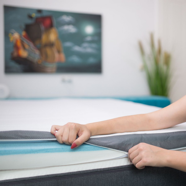 TV:stä tuttu Eazzzy Topper älysijauspatja. Painetta keventävä 2-kerrosjärjestelmä lisää nukkumismukavuutta. Erityisen rakenteen ansioista patja muotoutuu nukkujan mukaan, pysyy viileänä ja keventää nukkuma-asentoa kehon kipu- ja jännitystiloja lievittäen.