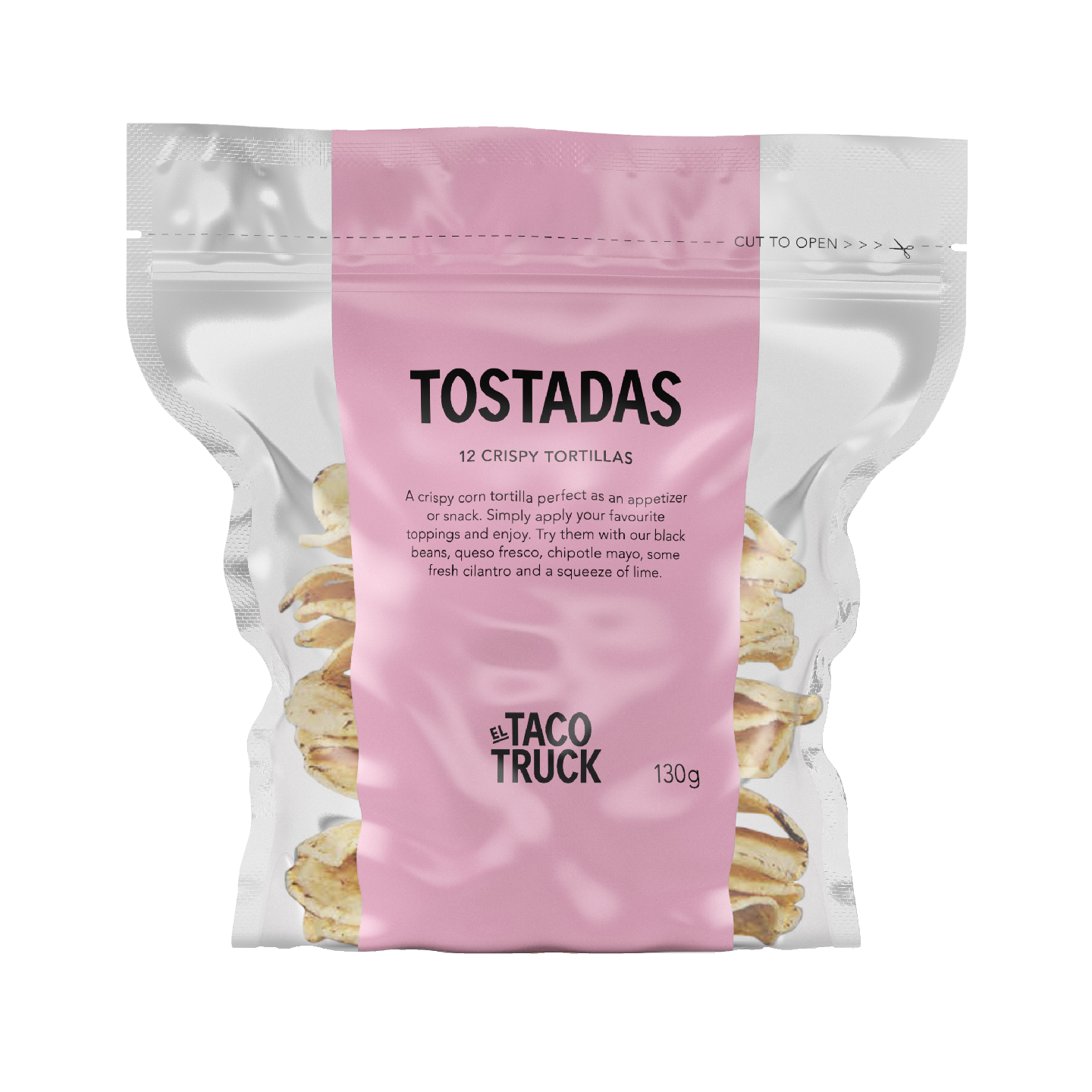 Friteerattu maissitortilla, täydellinen naposteltava tai alkupala. Syö näkkileivän tapaan! Laita päälle suosikkejasi, esim. valikoimamme black beans -papuja, chipotle mayoa ja guacamolea sekä tuoretta korianteria.