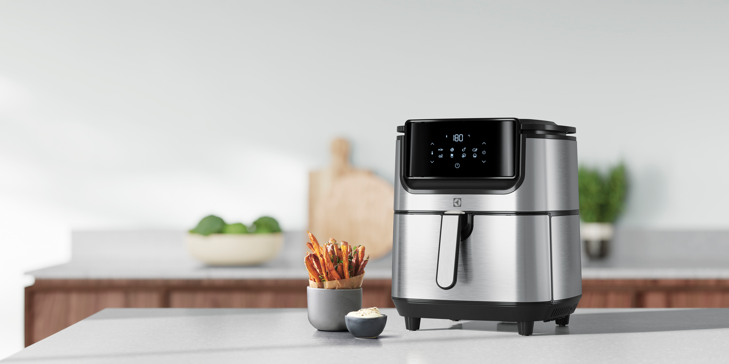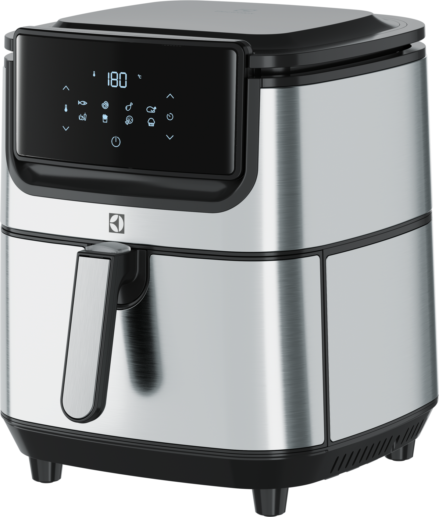 Explore 6 Air Fryer on monipuolinen keittiölaite. Sinun ei tarvitse käyttää useita laitteita, kun haluat leipoa, paistaa, paahtaa tai grillata – kaikki nämä onnistuvat Air Fryerilla. Voit hyödytää räätälöityjä valmiita reseptejä.