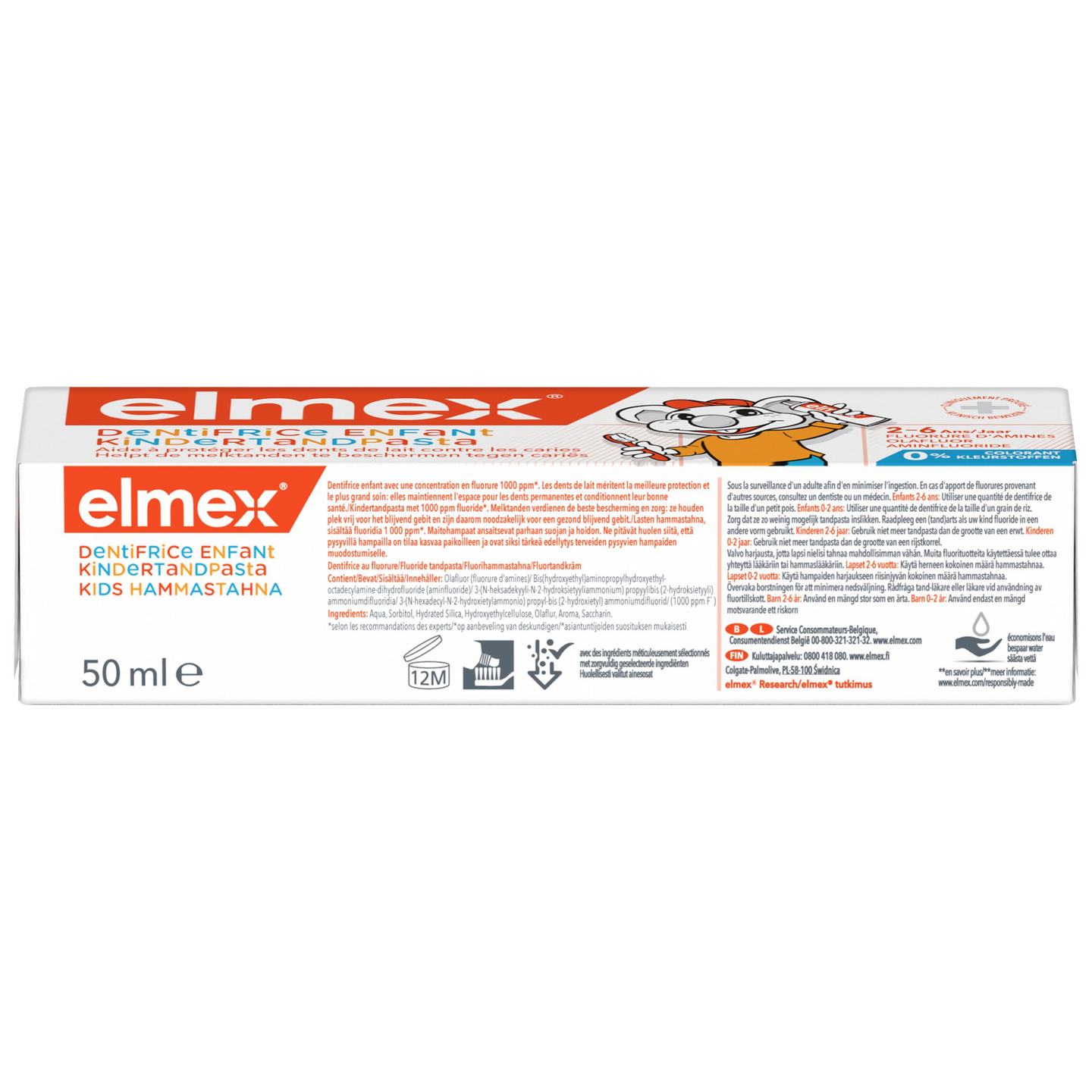 Pidä hyvää huolta pienten lasten maitohampaista elmex® Kids 2-6 v. lasten hammastahnan avulla. Sen sisältämä amiinifluoridi ehkäisee hampaiden reikiintymistä tehokkaasti, ja koostumus rakentaa suojaavan kerroksen hampaiden pinnalle. Parhaan tuloksen saat harjaamalla pienten lasten hampaat kahdesti päivässä käyttämällä herneen kokoisen määrän tahnaa. Tahna sisältää lapsille sopivan määrän fluoria (1000 ppm F').