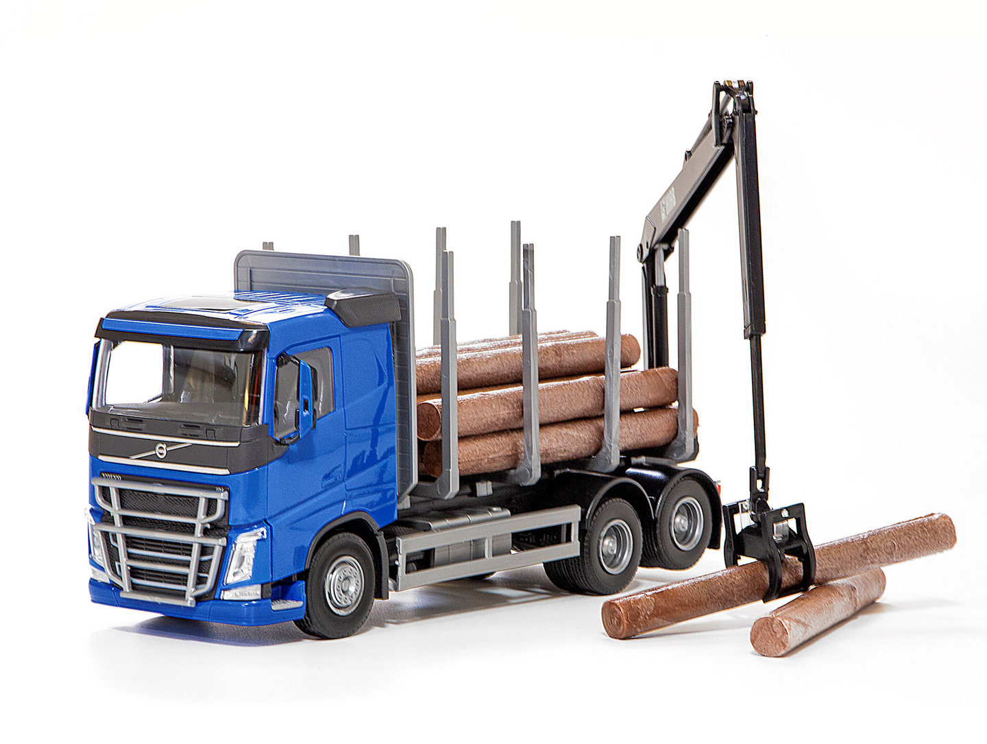 Emek Volvo FH tukkiauto, sininen. Autossa tukkinosturi tukkien lastaamiseen. Pakkauksessa mukana upeat peilit. Tuotteen koko 33 cm, kalvopakkaus. Mittakaava 1:25. Ikäsuositus 4+.