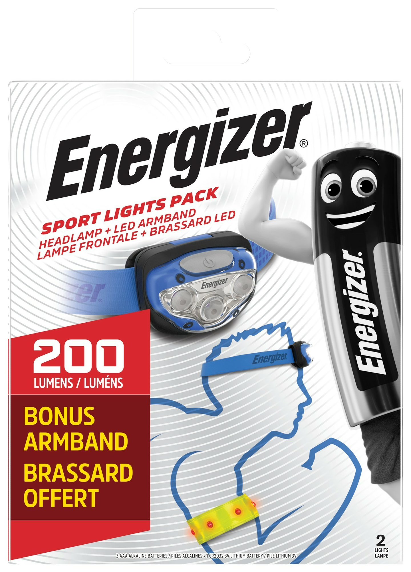 Sporttinen otsavalo säädettävällä otsanauhalla. Valon suuntaa että tehoa voidaan säätää. Naarmuuntumaton lasi. Sportpakkauksessa mukana myös erillinen käsivarteen laitettava 4 punaista LED valoa sisältävä käsivarsivalaisin joka lisää näkyvyyttä ulkona liikuttaessa. Erinomainen setti paljon ulkona liikkuville.